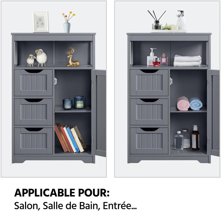 Multifonction : Un meuble de rangement polyvalent qui peut s’installer dans plusieurs pièces : salle de bains, chambre, cuisine, etc. Vous pouvez y ranger vos affaires personnelles et des objets décoratifs.