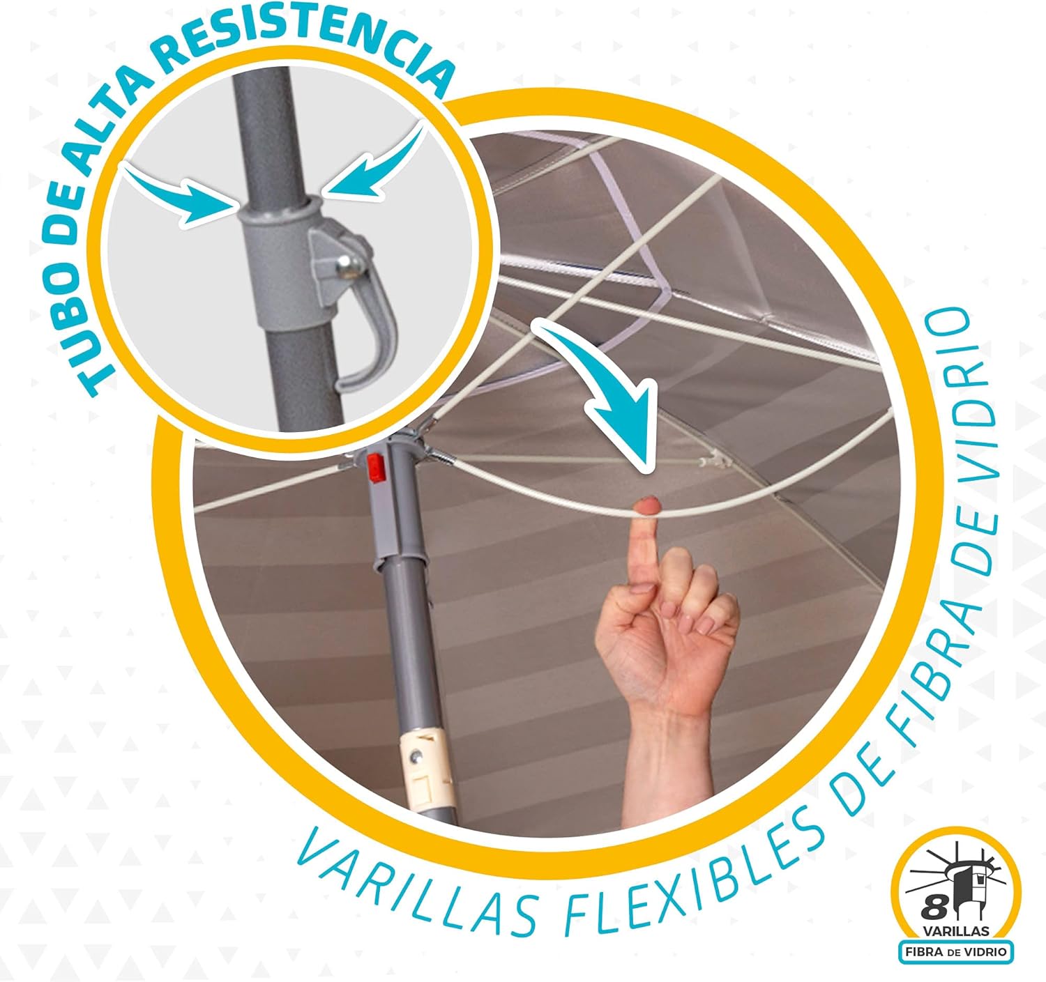 Marina: en polyester de haute qualité et panneaux colorés, avec 8 tiges en fibre de verre et un mât flexible pour guider l’ombre