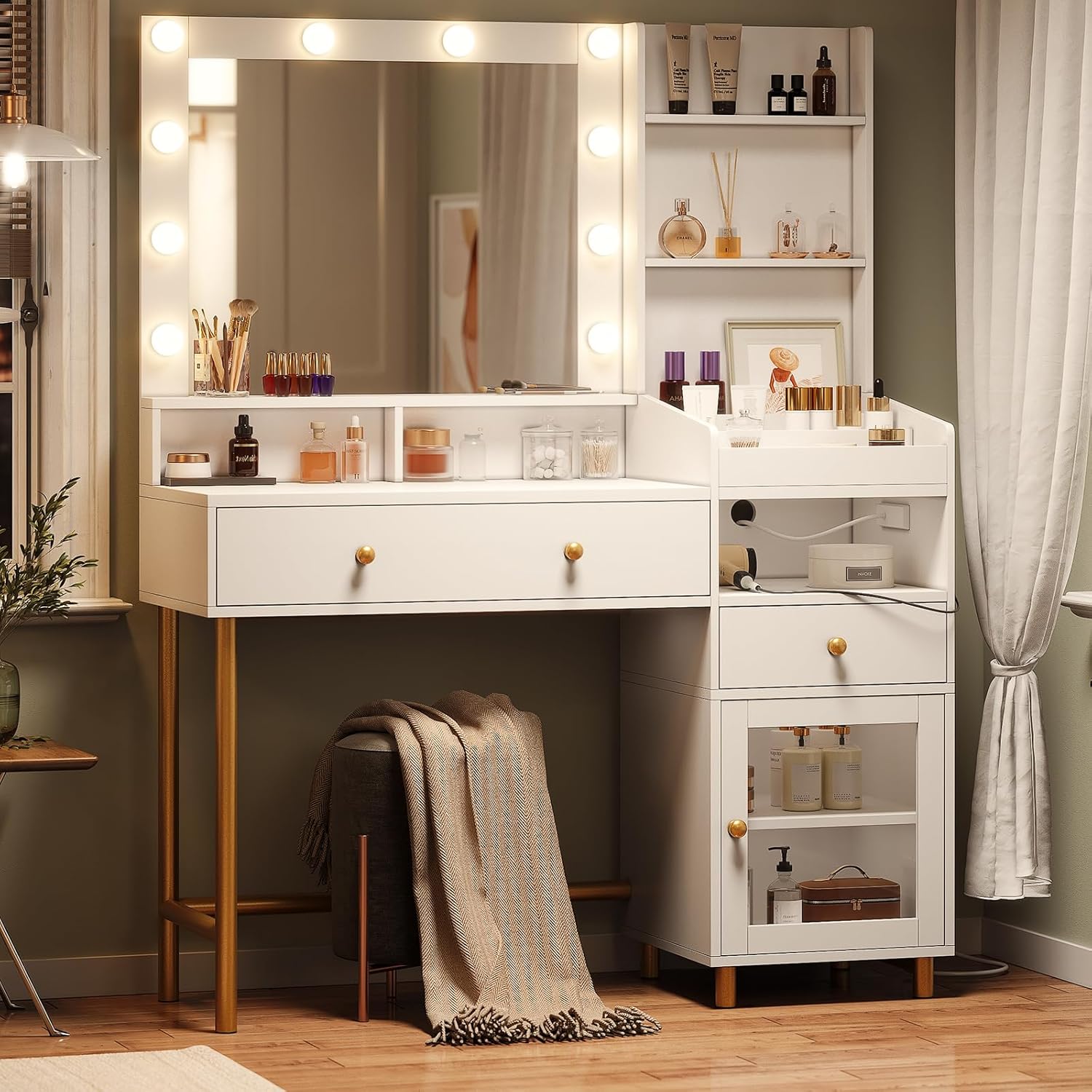 AOGLLATI table de maquillage avec éclairage et bon rangement des compartiments