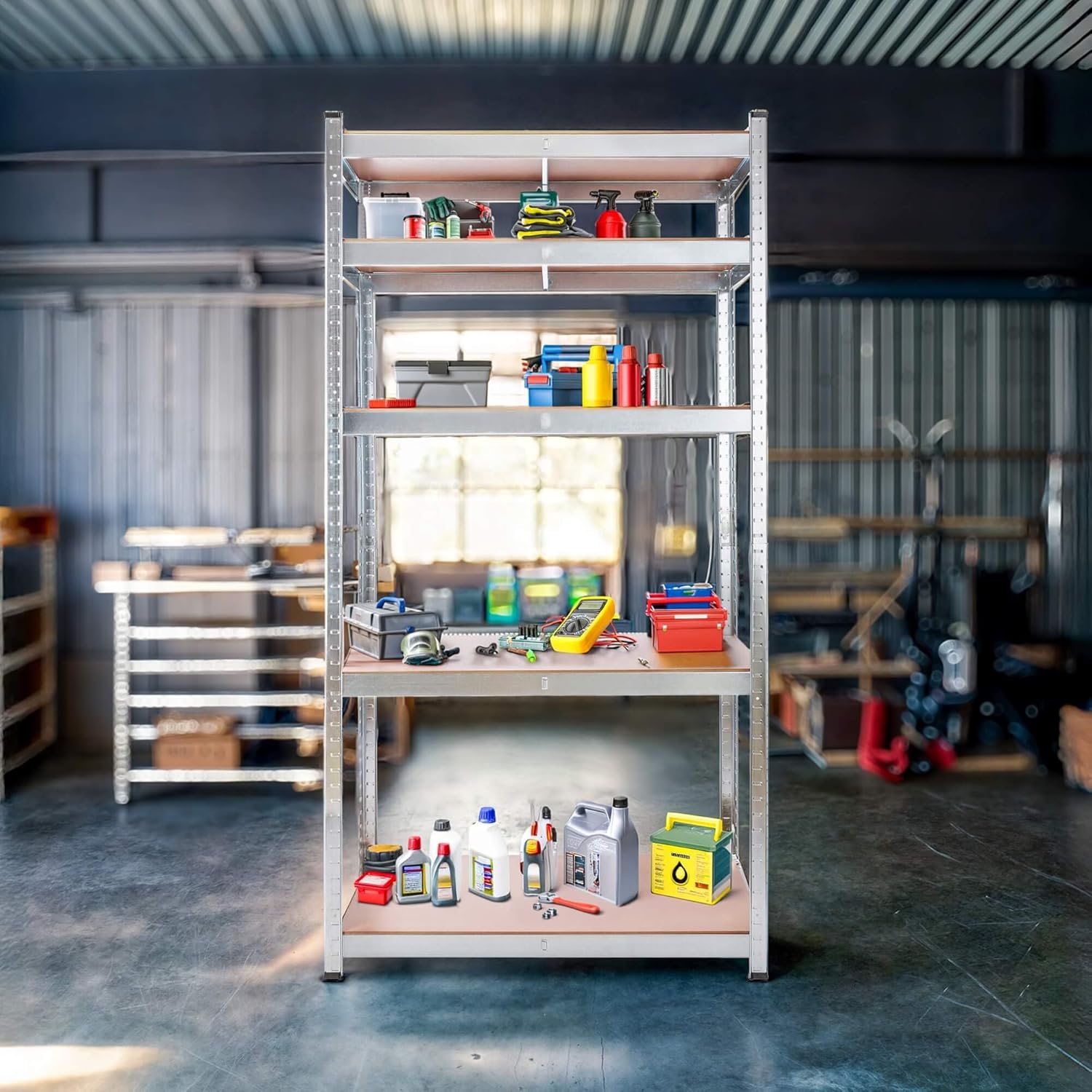 [Dimensions] 180 x 90 x 40 cm (HxLxP) | Capacité de charge 875 kg | Système d’assemblage sans outil | Solides étagères en MDF | 5 étagères | Couleur galvanisée | Épaisseur de matériau extra-large du cadre de 0,63 mm