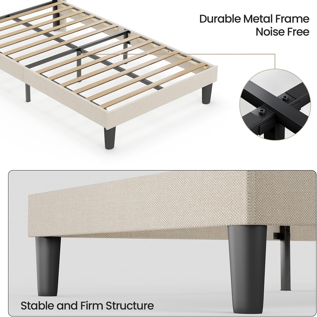 Cadre robuste & durable – Structure solide en bois et métal antirouille, renforcée par 7 pieds de soutien et des lattes en bois massif, garantissant stabilité et longue durée de vie.