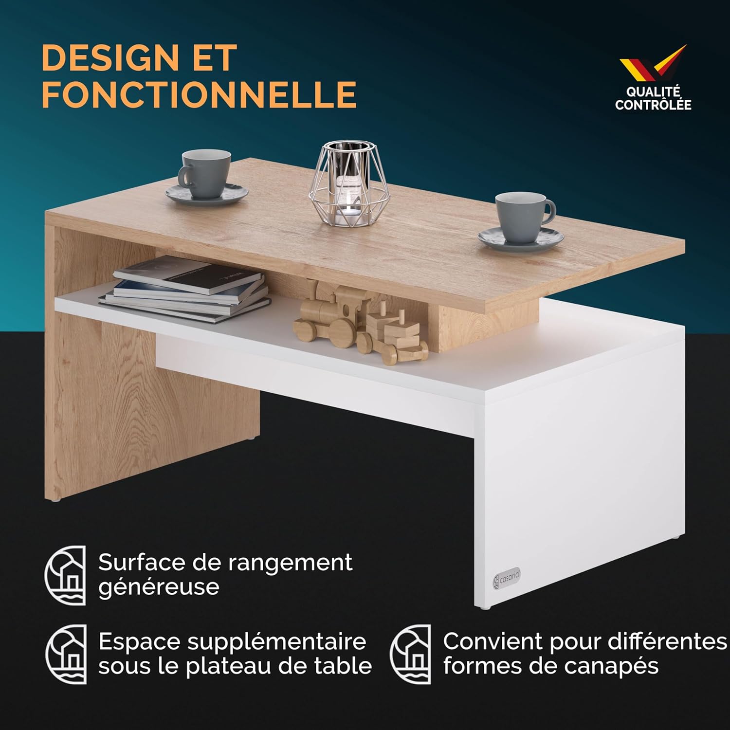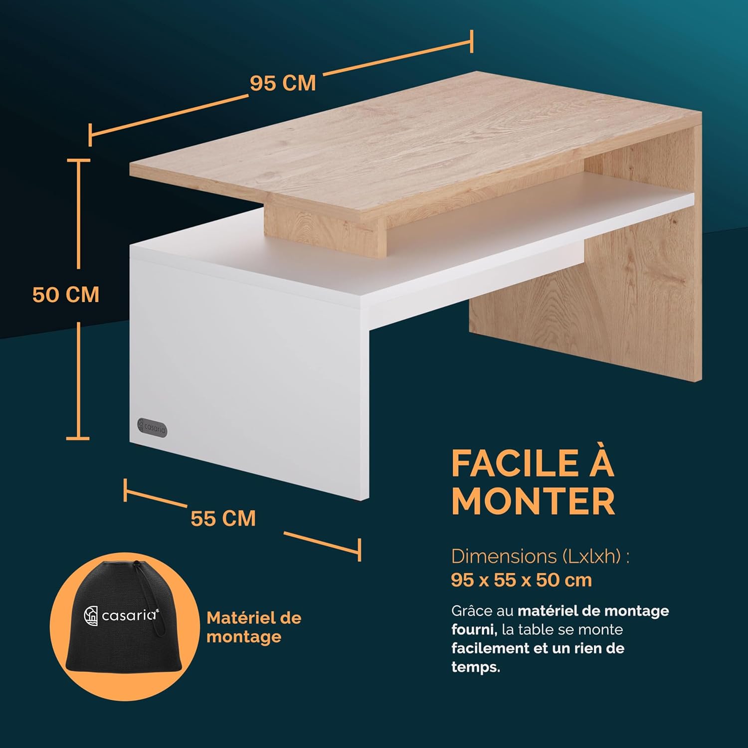 ROBUSTE ET STABLE : La table de salon est fabriquée en panneau de particules de 15 mm d’épaisseur, offrant une grande stabilité et une longue durée de vie au produit. Par ailleurs, elle peut supporter une charge totale de 50 kg et ses 4 pieds en plastique empêchent de rayer le sol.