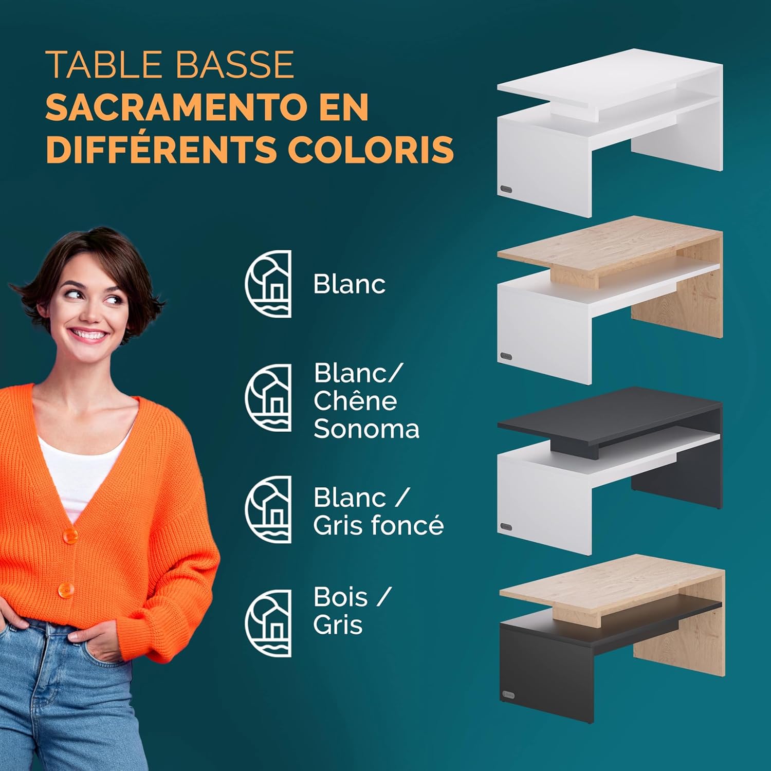 MULTI-USAGES : Grâce au choix de couleurs varié, la table basse de 95 x 55 x 50 cm s’adapte parfaitement à tout intérieur et se combine à merveille avec différents meubles. Elle convient aussi bien comme table basse, que table d’appoint dans le bureau ou encore meuble TV dans le salon.