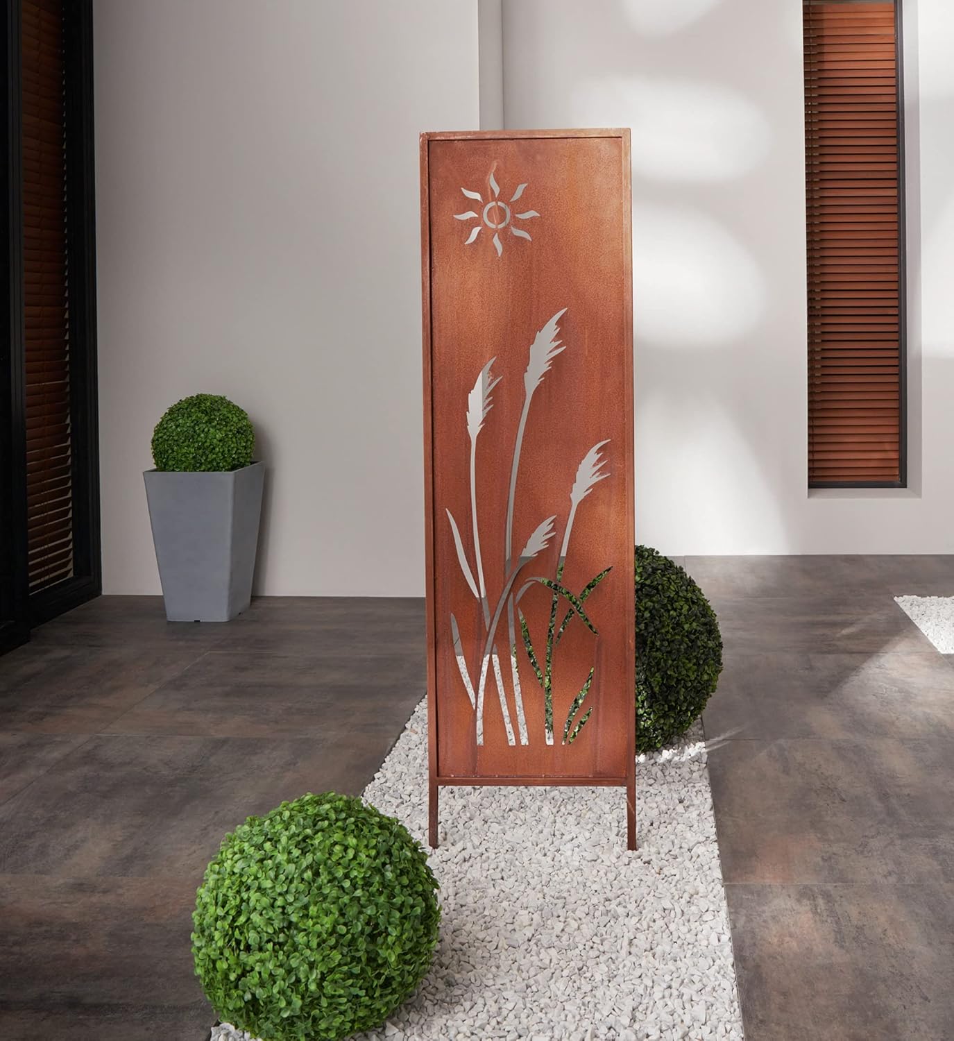 Donnez à votre extérieur un point fort élégant avec la plaque décorative « roseaux ». Avec sa finition rouille moderne et ses découpes en filigrane, ce tableau décoratif en métal apporte une combinaison harmonieuse de design et de nature à votre jardin, terrasse ou entrée.
