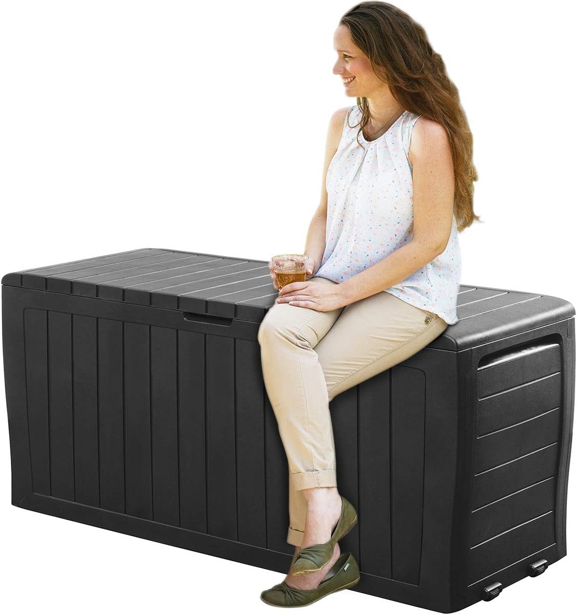 RÉSISTANT AUX INTEMPÉRIES : Votre nouvelle banquette-coffre est fabriquée en polypropylène de haute qualité, résistant aux UV et aux intempéries. Elle résiste au vent et aux intempéries, assurant la sécurité et la protection de vos accessoires de jardin.