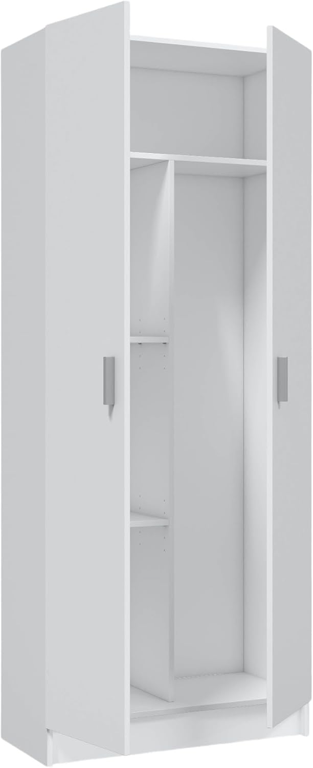ARMOIRE POLYVALENT CHARLESTON – Armoire à balais avec 2 portes, Étagère à chaussures avec étagères, Placard à balai, cm 73x37h180, Blanc. STRUCTURE ET UTILISATION – Armoire murale à deux portes battantes et trois étagères, dont deux étagères modulables: à l’intérieur la structure modulable des étagères permet de tirer le meilleur parti de l’espace – En fonction des besoins de la maison et de ses fonctions, ce meuble de rangement est parfait pour meubler un placard, une buanderie, une salle de bain, un garage, un couloir, une entrée, un dressing ou un bureau contenant des produits de nettoyage aux outils de jardinage. FOURNI AVEC KIT DE MONTAGE – Ce meuble est livré démonté avec un simple livret d’instructions de montage joint qui vous permettra de le monter rapidement et facilement – L’emballage est précis et adapté au meuble, afin de préserver l’élément d’origine meubles pendant le transport. CARACTÉRISTIQUES TECHNIQUES – Produit en panneau d’aggloméré mélaminé d’une épaisseur de 15 mm, un matériau résistant aux chocs et aux rayures, durable et étanche – Bords finis en mélaminé – Dos du meuble en panneau de fibres de moyenne densité laqué d’une épaisseur de 3mm – Classification selon teneur ou dégagement de formaldéhyde TYPE E1 – Meuble équipé de charnières métalliques, de supports métalliques pour les étagères, de plots ABS anti-bruit et anti-rayures pour la partie inférieure du meuble et de poignées ABS gris aluminium – Poids maximum supporté mobile: Kg 45 – Poids maximum supporté par étagère: Kg 8. DIMENSIONS EN CM – Armoire polyvalente: Longueur: 73 Largeur: 37 Hauteur: 180
