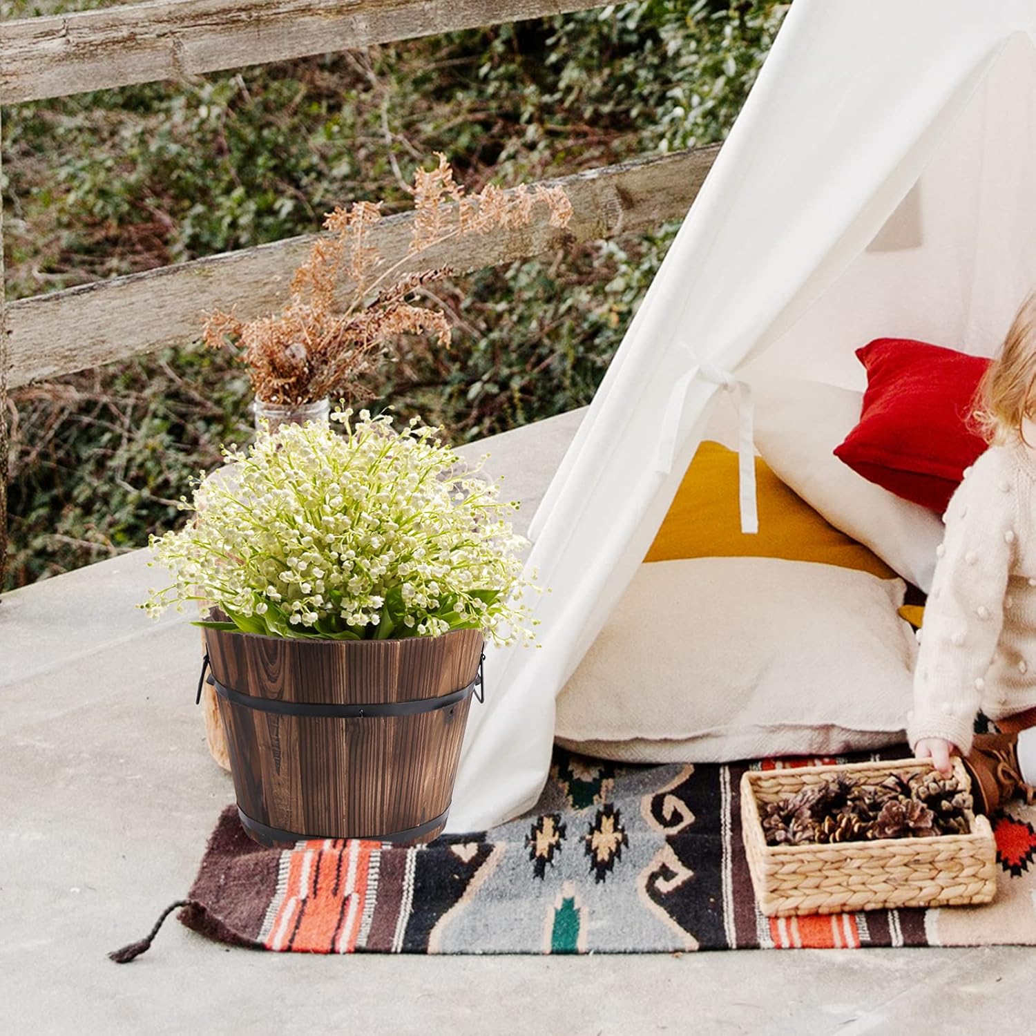 Plante de fenêtre jardinière en bois jardinières en tonneau, jardinières rustiques Pottes de fleurs pour plantes décor d’ intérieur