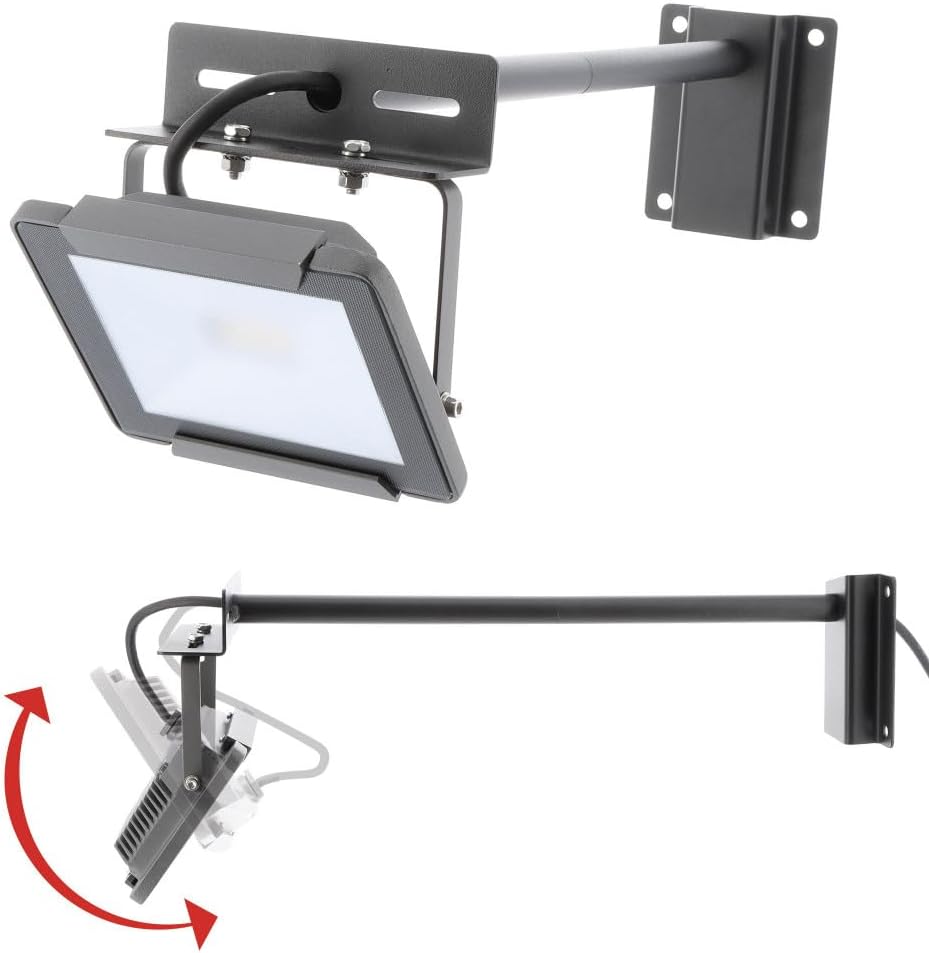 Eclairez une enseigne ou l’exterieur de votre domicile de manière optimal grâce à cet éclairage LED avec système d’inclinaison et support mural déporté.