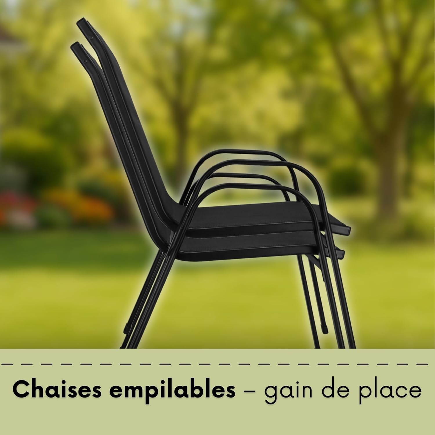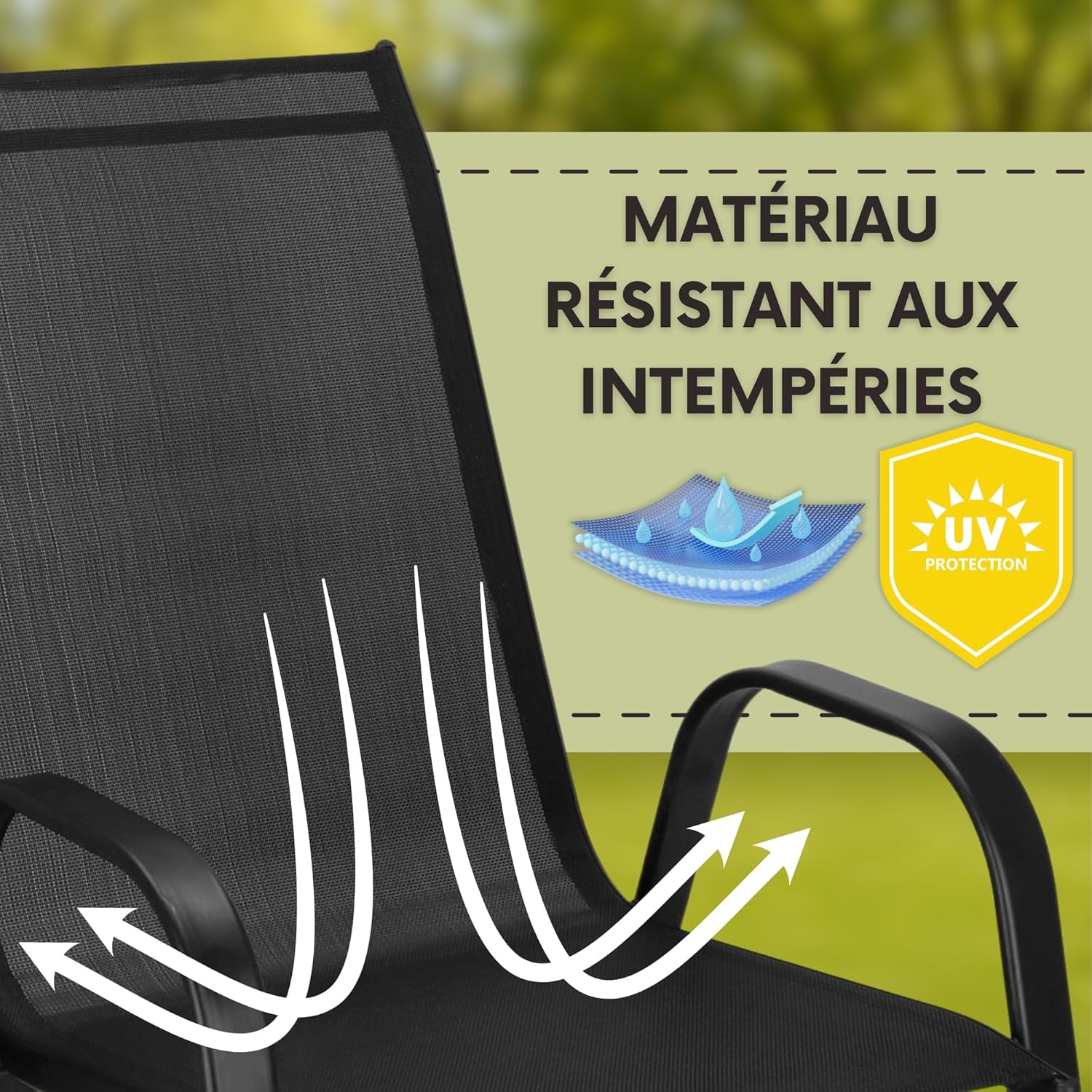 Haute qualité : les chaises sont fabriquées en textilène durable et le cadre en acier revêtu de poudre assure durabilité et résistance aux intempéries. Parfait pour une utilisation en extérieur, sous la pluie, le soleil ou la neige.