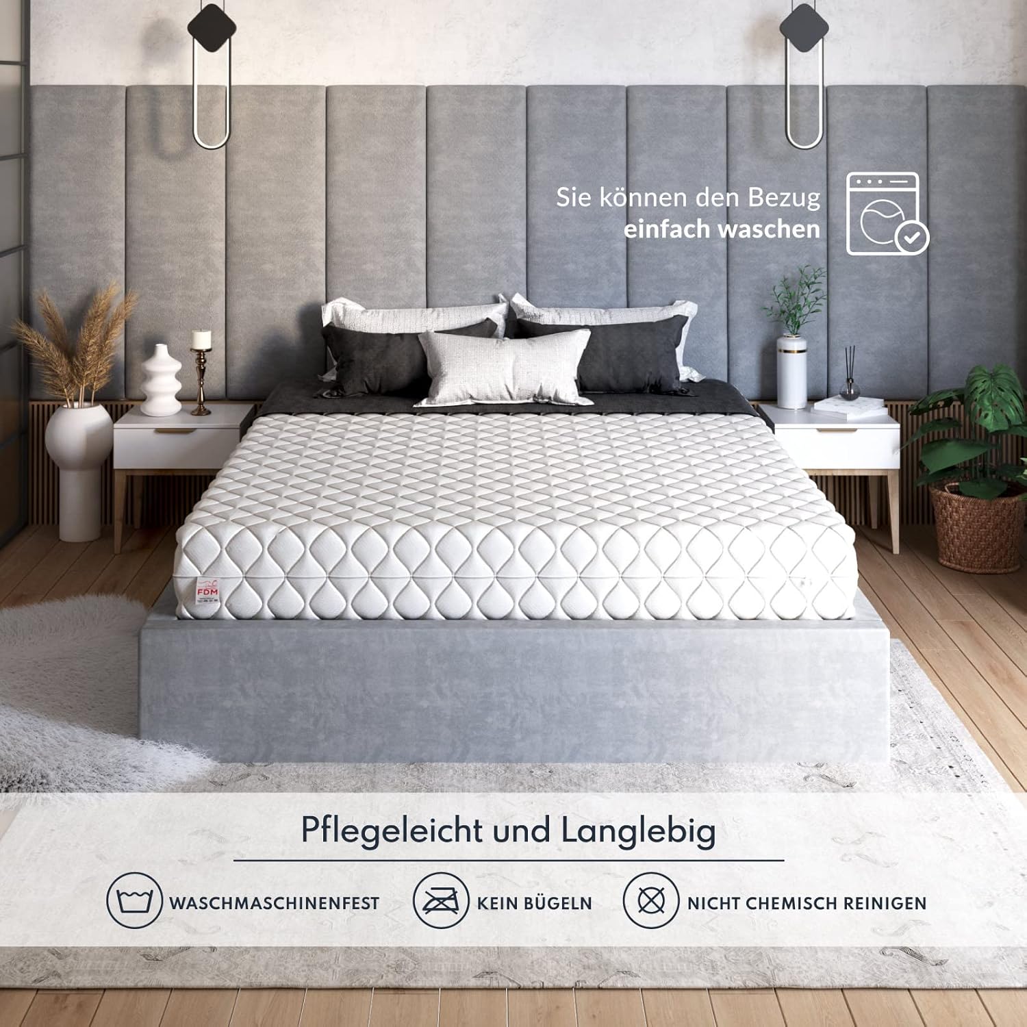 Housse de haute qualité – matelas avec fermeture éclair cousue, amovible et lavable pour un entretien et une hygiène faciles, la housse est douce au toucher et protège le matelas de la saleté.