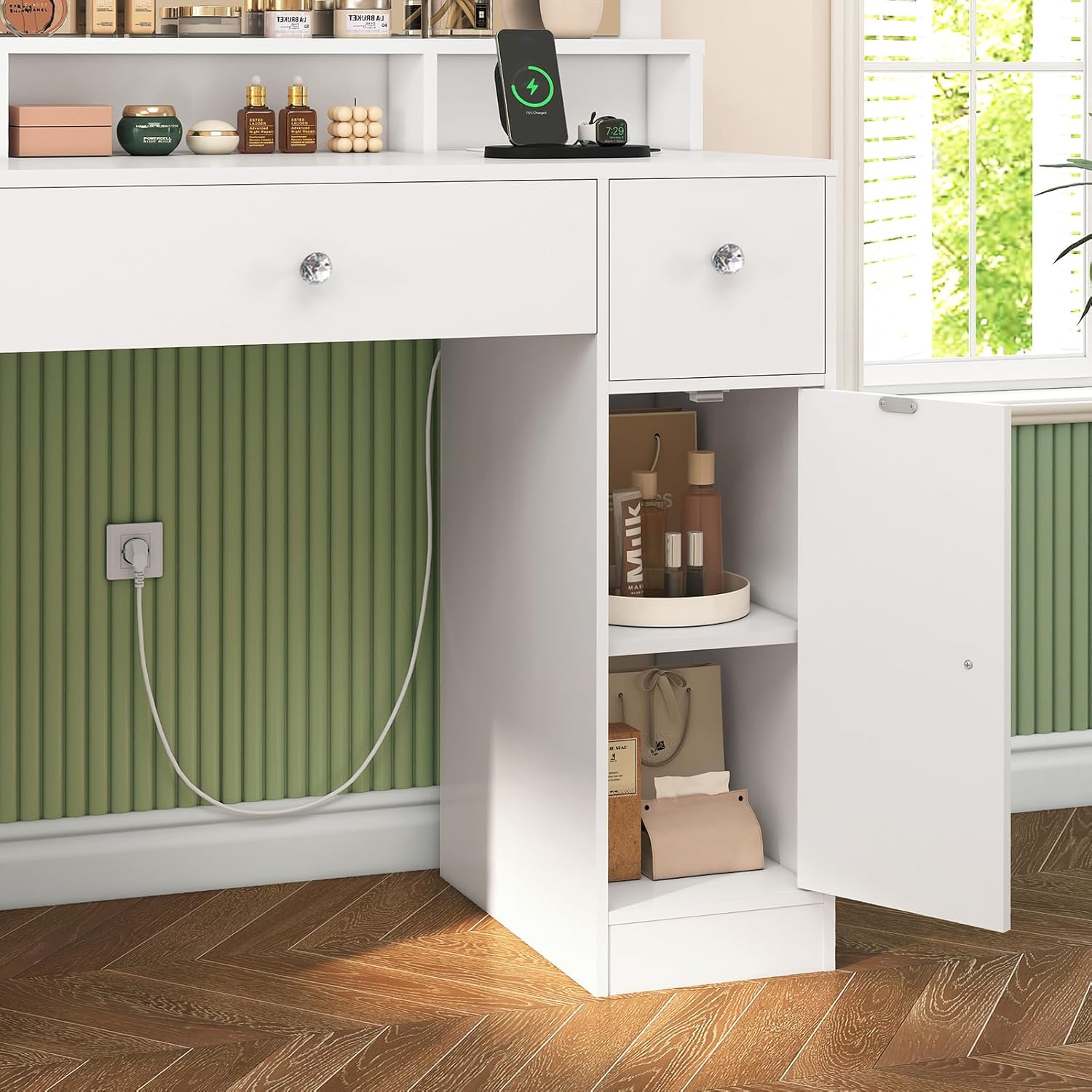 [2 USB ET 2 PRISES] : La Coiffeuse est équipée de 2 prises standard et de 2 ports USB, ce qui vous permet de brancher des sèche-cheveux, des coiffeuses, des lampes de table et d’autres équipements pour répondre aux besoins de différents types de clients, des lampes de table et d’autres appareils pour répondre à différents besoins en électricité