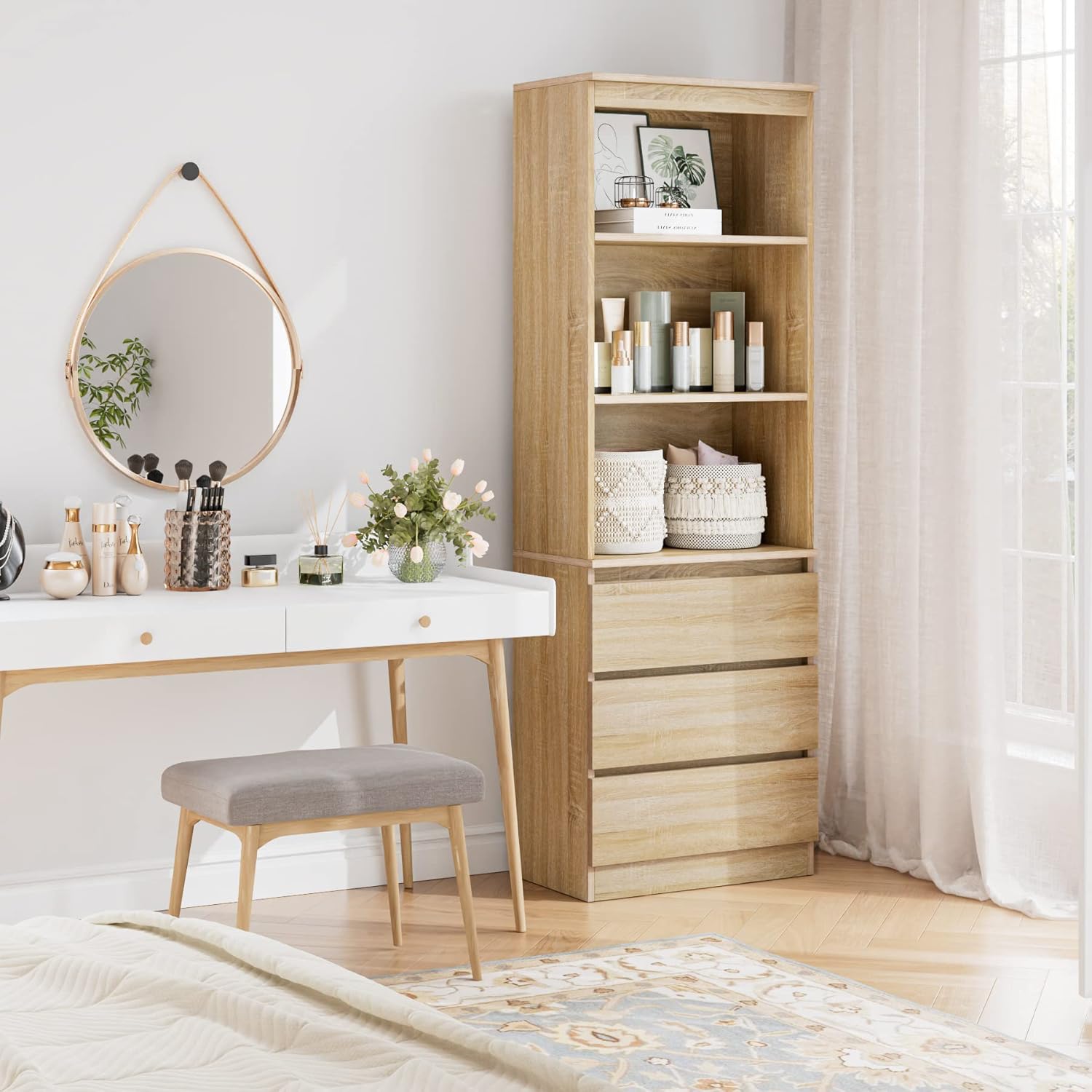 Design : Commode à 3 tiroirs facile à ouvrir et à fermer. En raison de la hauteur de 180 cm, notre armoire haute est équipée d’un équipement anti-chute, elle peut être fixée au mur pour plus de sécurité.