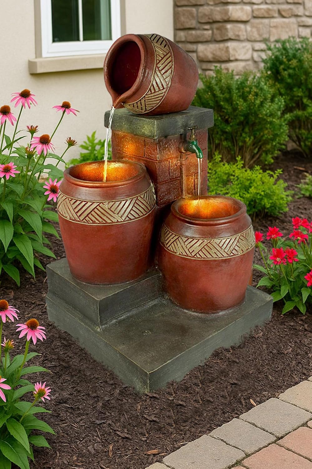 Carafes fontaines de jardin avec éclairage