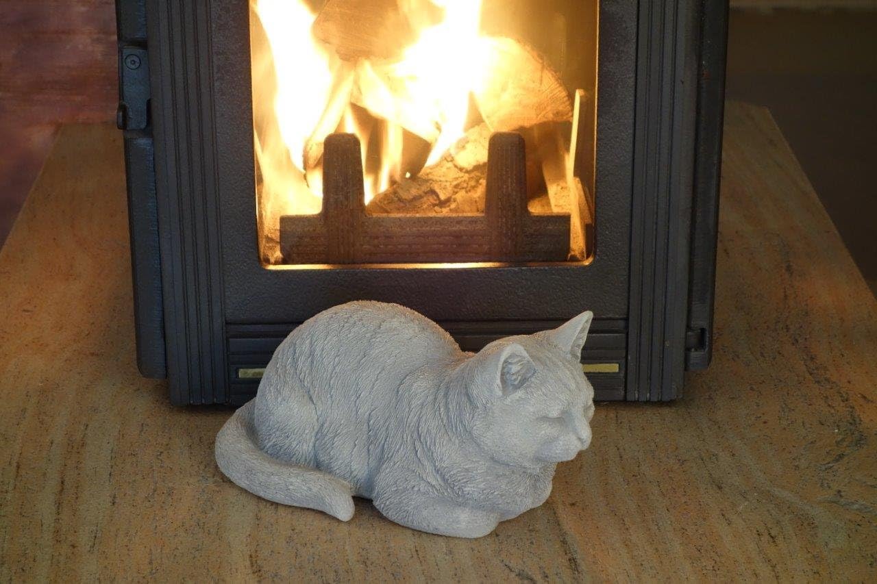 Figurine en pierre Chat couché - la patte de velours détendue reste toujours en alerte La patte de velours détendue reste toujours alerte
