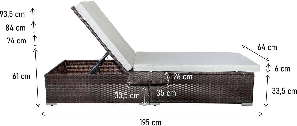: 4 hauteurs d’inclinaisons Traitement antirouille et anti-UV Résistant à l’eau Petite tablette intégrée sur le bain de soleil.
