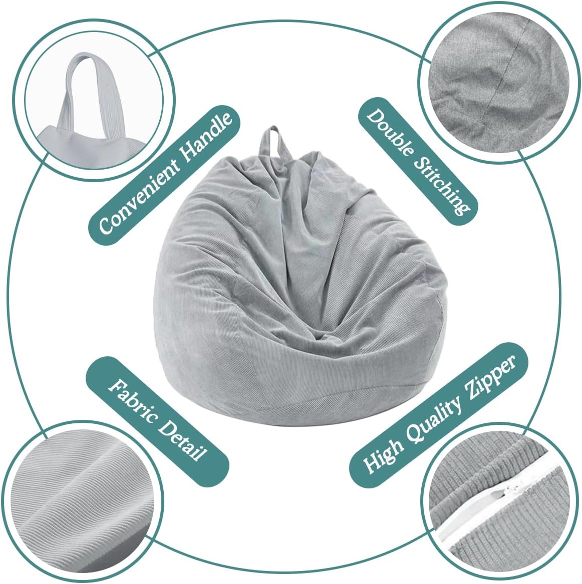 Highdi Pouf Salon pour Adulte 100 x 120 cm(Sans Remplissage)- Velours Côtelé Housse de Pouf pour Intérieur et Extérieur, Gris Kids Bean Bag Cover pour Salon