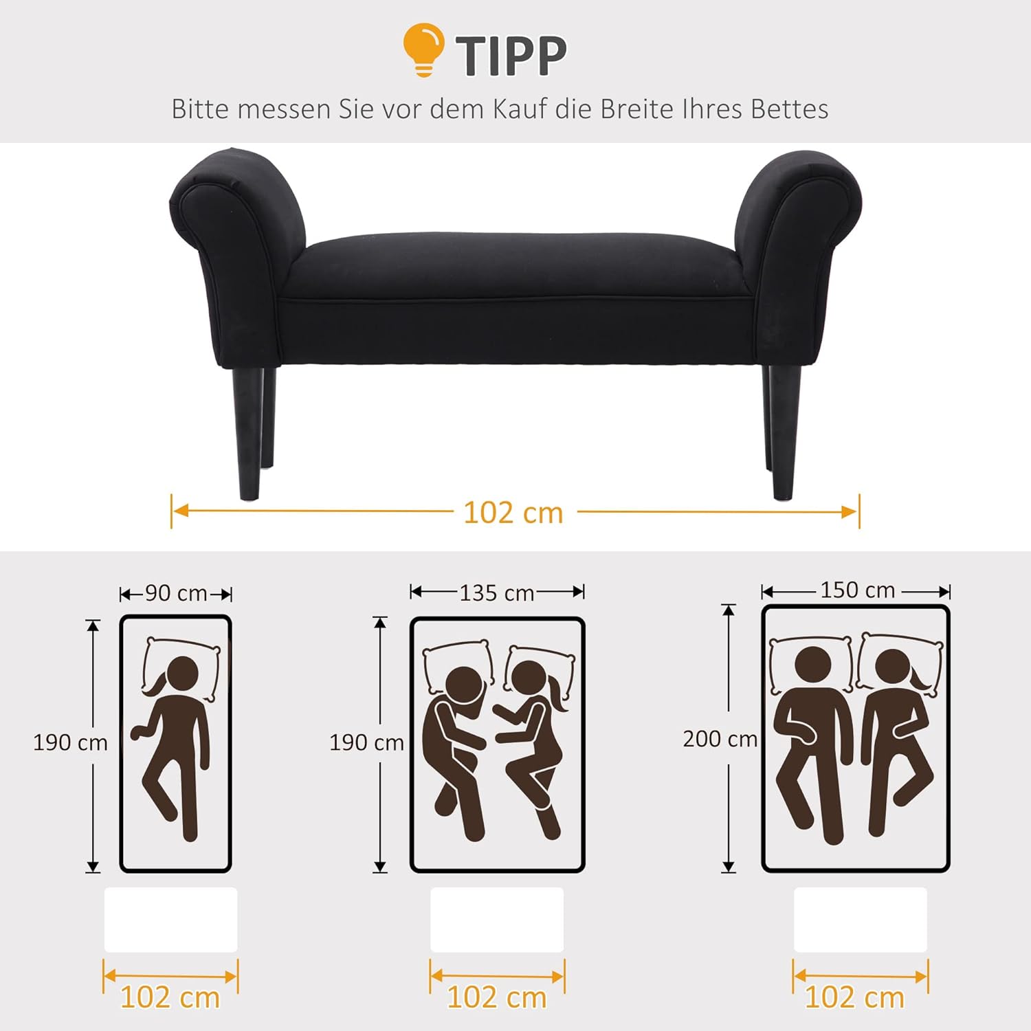 GRAND CONFORT : Ce tabouret de lit est rempli d’une mousse douce et épaisse. Le coussin est recouvert de rembourrage doux ce qui garantit un grand confort