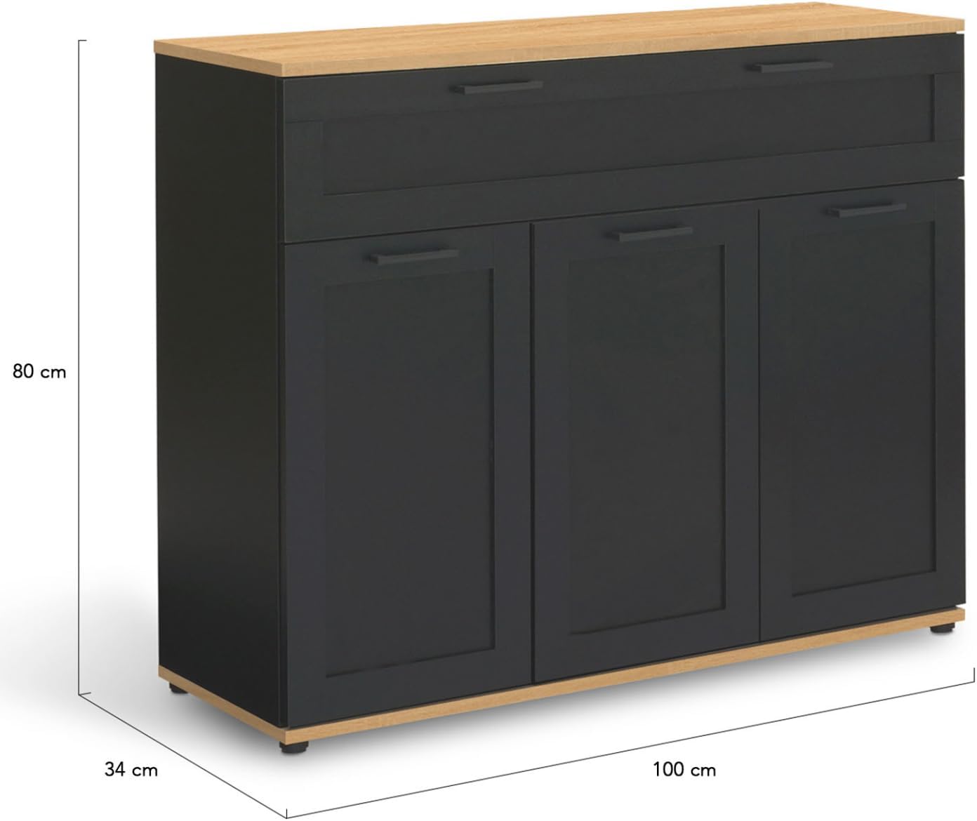 Dimensions du buffet : L. 100 x l. 34 x H. 80 cm – 3 portes + 1 tiroir