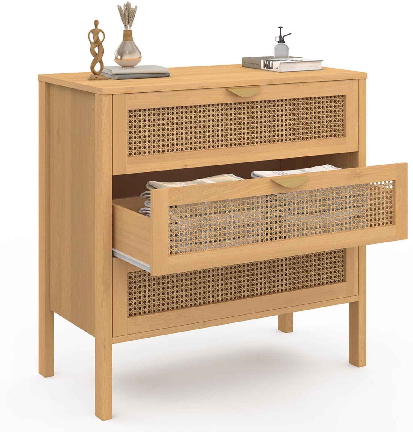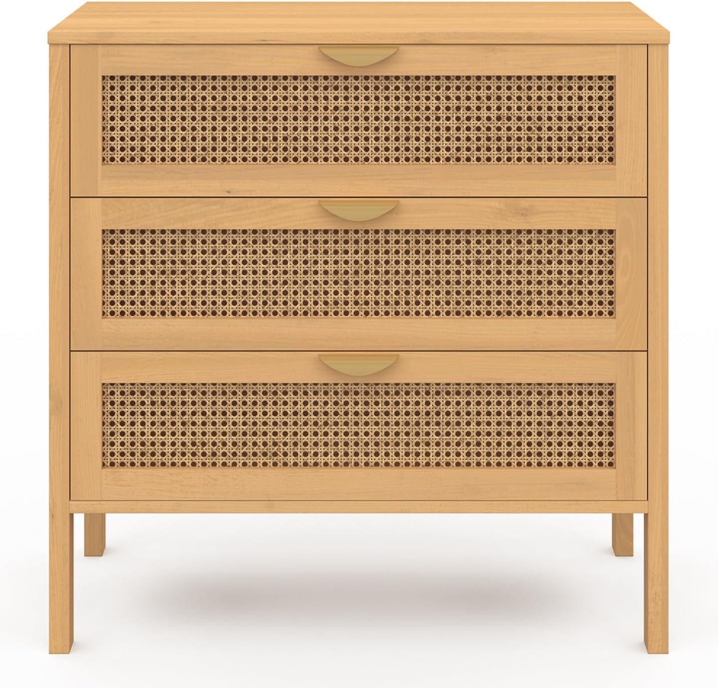 Commode 3 tiroirs EDHEN cannage et bois pour un style tendance et naturel dans votre intérieur