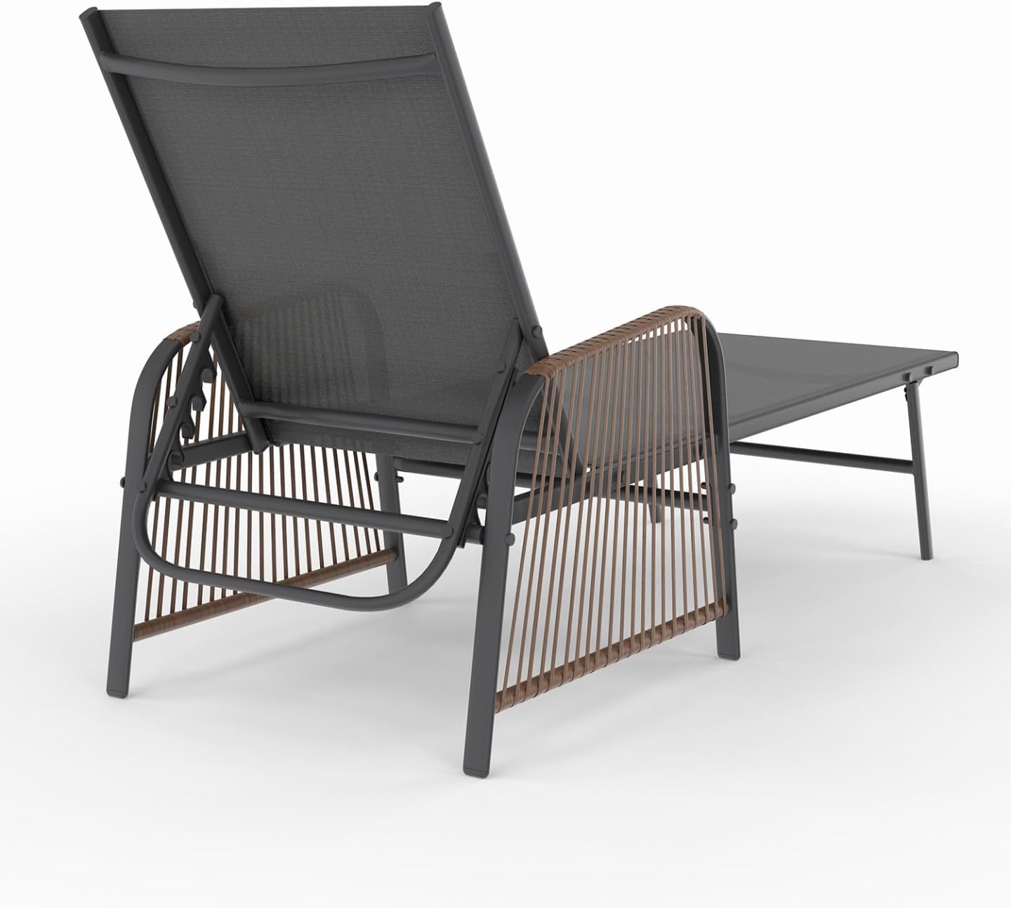 Laissez vous tenter par ces transats RIO gris anthracite avec cordage et décorez votre jardin avec style !Doté de 4 positions d’inclinaison, ces transats s’adaptent à toutes vos envies : sieste au soleil, moments de lecture, ou discussion entre amis. Chaque transat offre une large surface de 185 x 57 x 31 cm en position allongé, vous permettant de vous étendre confortablement pour profiter pleinement des moments de détente !La structure en acier gris offre une base solide tandis que la toile en textilène gris anthracite apporte une touche d’élégance. Les accoudoirs sont sublimés par des cordages effet rotin, ajoutant une note chaleureuse et tendance. La toile en textilène est résistante aux UV et facile d’entretien, ce qui préservera sa couleur au fil des saisons.Ne manquez pas ce lot de 2 transats RIO gris anthracite avec cordage en rotin pour aménager et décorer votre extérieur !Astuce : ajoutez des coussins de transat de jardin, également disponibles sur notre boutique en ligne, pour un maximum de confort !Dimensions d’un transat de jardin RIO gris anthraciteDimensions allongées : Longueur 185 x largeur 57 x Hauteur 31 cmMatériaux : Structure en acier, assise en textilène, osier sur les accoudoirsColoris : Gris anthracite et rotinÉpaisseur de la structure : 36 x 14 mmNombre de positions d’inclinaison : 4Hauteur assise : 32 cmCharge maximale supportée : 130 kg À monter soi-même Retrouvez également tous nos transats et bains de soleil disponibles sur notre boutique en ligne !