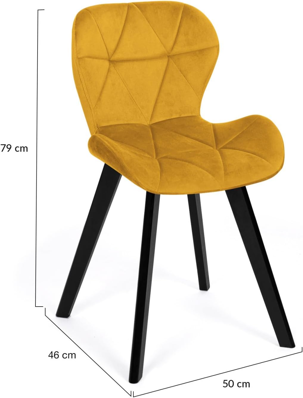 Profitez de ces chaises ROBINE en velours mix color gris, bleu et jaune pour moderniser votre intérieur et apporter une touche vintage à votre décoration ! Aménagez un coin repas chic et tendance avec ce lot de 4 chaises.Leur forme arrondie et leur coloris sobre iront idéalement chez vous. Leurs pieds en bois noir apporteront un côté moderne et élégant à votre pièce !Fonctionnelles, ces chaises en velours s’installent dans la pièce que vous souhaitez. Avec leur dossier et leur assise ergonomique, elles pourront servir de chaises de bureau ou de réception dans votre salon.Dotées d’une assise large et confortable au revêtement en velours chaleureux et d’un dossier légèrement enveloppant, ces chaises très confortables vous permettront de passer d’agréables moments à table entouré de vos proches.Profitez de 4 couleurs : bleu, gris foncé, gris clair et jaune et mixez-les avec la décoration de votre pièce ! Les nuances grises intemporelles s’accorderont harmonieusement avec le jaune et le bleu pour une touche peps !Alors n’hésitez plus et craquez pour ce lot de 4 chaises velours au style design et à petit prix pour réaménager votre intérieur !Dimensions des chaises ROBINE en velours mix colorDimensions globales : Longueur 50 cm x largeur 46 cm x Hauteur 79 cmDimensions assise : L. 46 x l. 37 x H. 47 cmStructure de l’assise en boisRevêtement en veloursPieds en boisColoris : jaune, bleu et gris + pieds noirsVendues en lot de 4À monter soi-mêmeCe modèle de chaises existe également en tissu et en PU, à retrouver sur notre boutique en ligne.