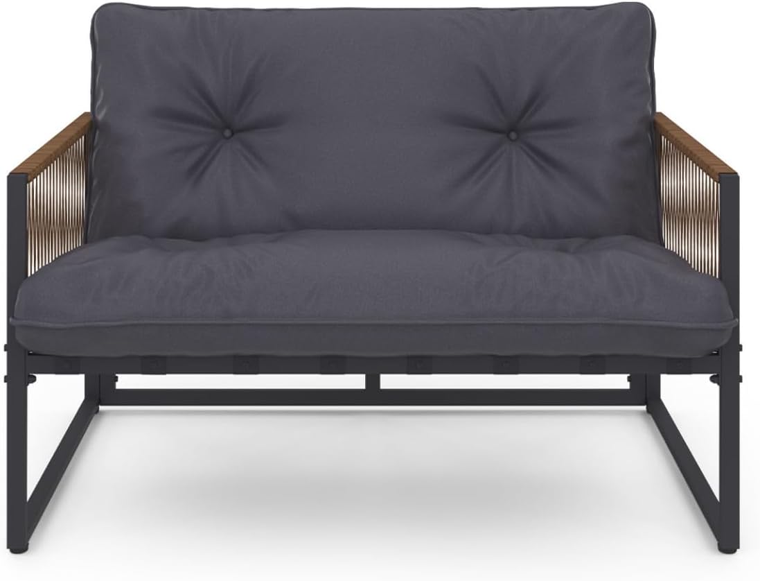 Craquez pour le salon de jardin RIO et profitez de moments chaleureux dans votre jardin ou sur votre terrasse ! Avec son look bicolore et bi-matière en acier gris et cordage marron ce salon 4 places apportera design et esthétisme à votre extérieur ! Composé de 2 fauteuils et d’un sofa recouverts d’un épais coussin gris ultra confortable, ce salon est idéal pour profiter de votre extérieur confortablement installé. De plus sa table basse de L.65 x l.42 x H.35 cm vous permet d’y poser vos encas et boissons fraîches pour les avoir à portée de main tout en profitant de longues journées ensoleillées et soirées d’été entre amis. Que vous preniez un bain de soleil ou que vous profitiez d’un apéro à plusieurs, soyez sûr d’apprécier chaque moment passé dans votre jardin.Fabriqué avec des matériaux de qualité, le salon RIO vous garantit stabilité, robustesse et résistance au soleil ainsi qu’aux intempéries ! Ce salon de jardin tendance et cocooning apportera la touche d’exotisme indispensable à votre extérieur. L’association du canapé et des fauteuils, tous munis d’accoudoirs en polyrotin marron, créée une ambiance chaleureuse. Pour parfaire votre ensemble, vous pouvez l’agrémenter d’un tapis d’extérieur ainsi que de lumières d’ambiance !Ce salon de jardin bas 4 places est parfait pour les retrouvailles en famille comme entre amis pour profiter du beau temps ! Les accoudoirs effet rotin apportent design et modernité et ce salon bas deviendra rapidement l’élément indispensable de vos soirées d’été et de vos déjeuners au soleil.Dimensions du salon de jardin bas RIODimensions globales des fauteuils : Longueur 60 cm x largeur 70 cm x Hauteur 67 cmDimensions globales du canapé : Longueur 114 cm x largeur 70 cm x Hauteur 67 cmDimensions globales de la table : Longueur 65 cm x largeur 42 cm x Hauteur 35 cmStructure en acier gris anthracite et accoudoirs en polyrotinCoussin en polyester 180gr/m² gris anthracite épaisseur 6 cmPlateau de la