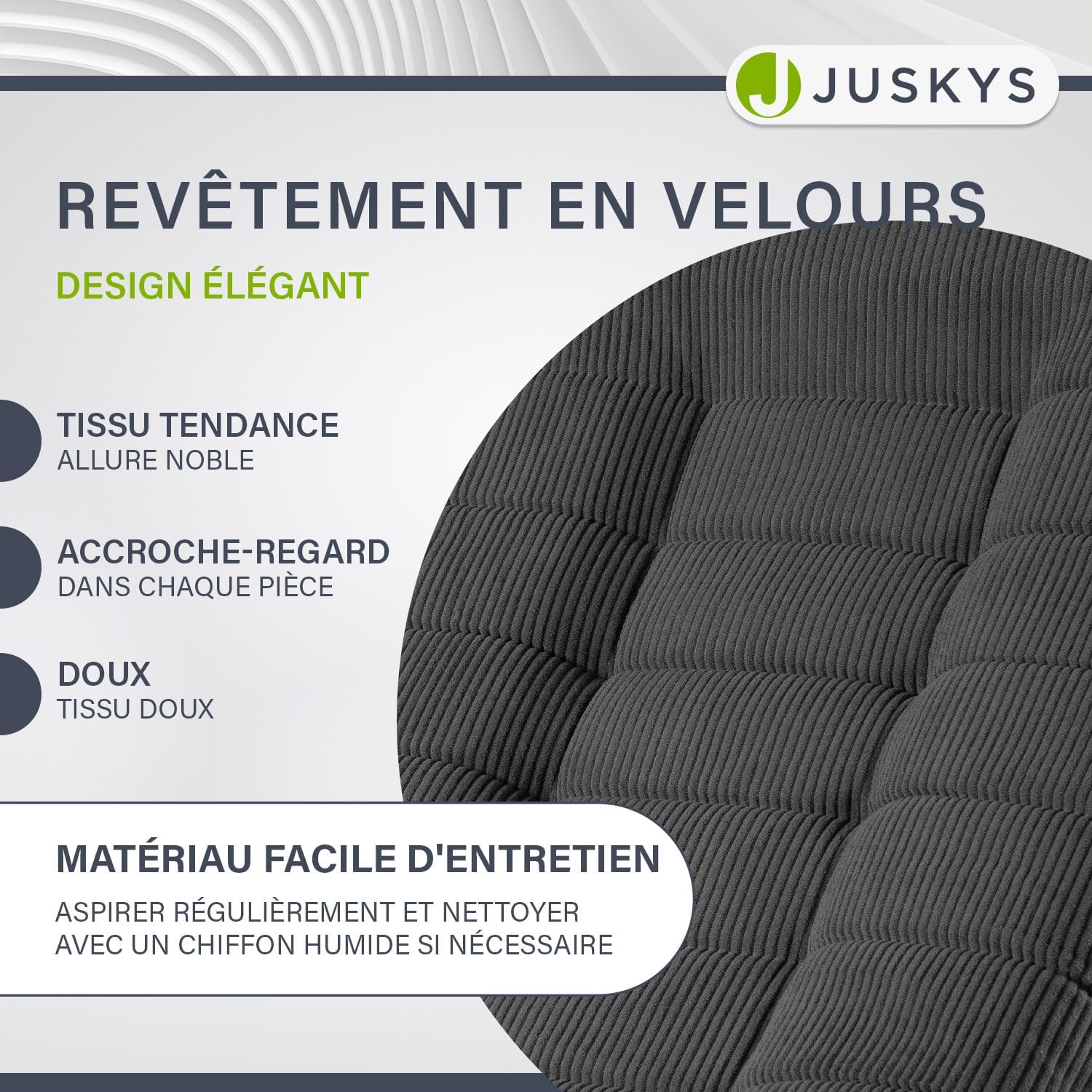 – Tissu en velours facile à entretenir pour un contact agréable avec la peau