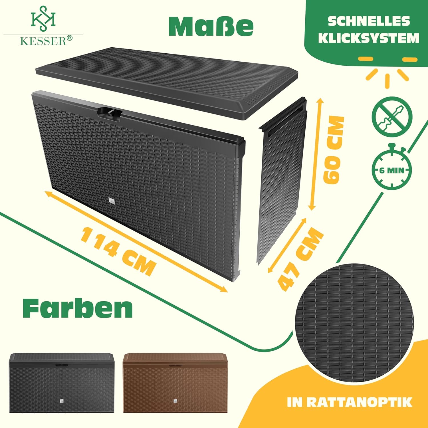 𝐋𝐄 𝐂𝐎𝐅𝐅𝐑𝐄 𝐃𝐄 𝐑𝐀𝐍𝐆𝐄𝐌𝐄𝐍𝐓: KESSER avec une capacité de 290 litres, offre suffisamment de place pour ranger vos coussins, matelas et autres articles ou outils de jardinage