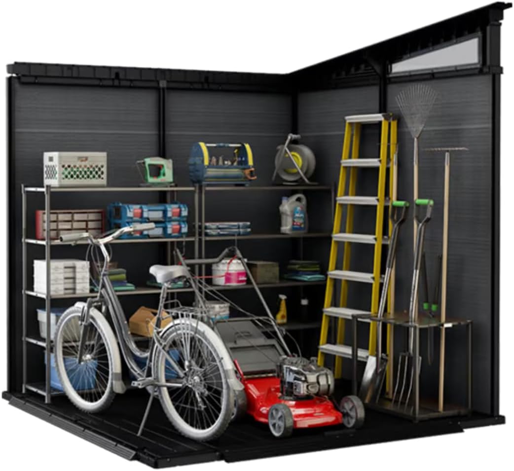 Durable et nécessitant peu d’entretien grâce à la résine, il résiste aux intempéries, il conserve vos objets stockés en excellente état en les gardant au sec et ventilés par tous les temps.