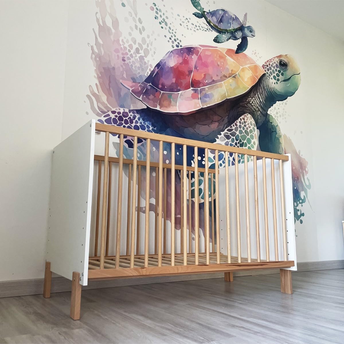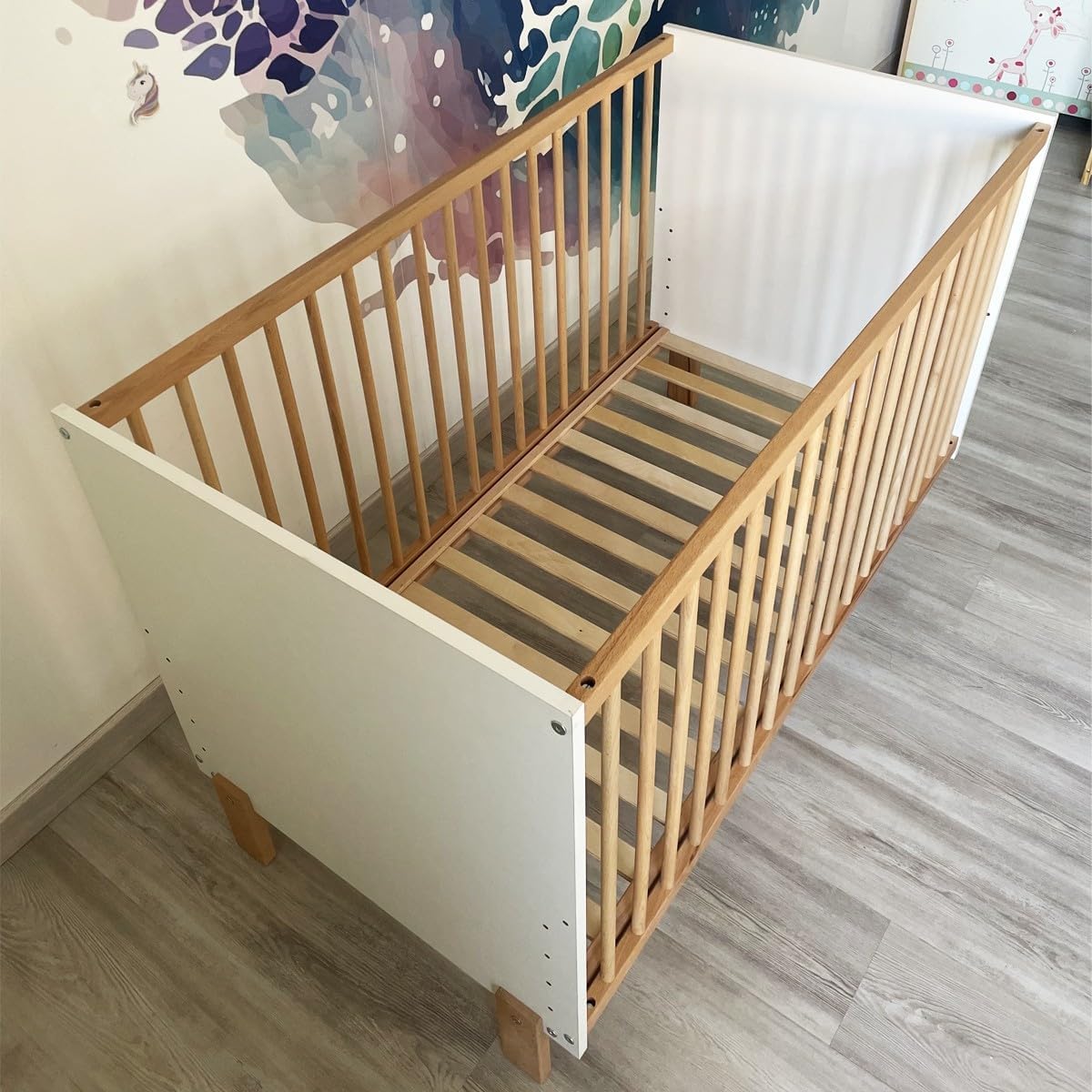 MATTI Lit bébé évolutif à barreaux pieds droits design moderne Pour les enfants de 0 à 3 ans.