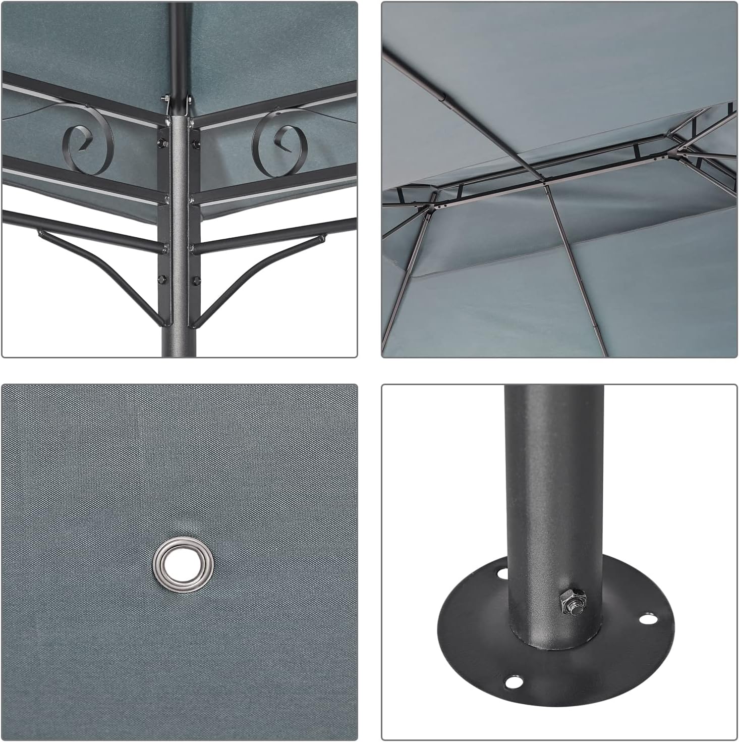 [Conception de Toit Unique] – La conception du toit à double couche permet la circulation de l’air à l’intérieur de la tonnelle, gardant l’intérieur de la tonnelle frais et sec. En même temps, les trous métalliques sur le toit évitent la formation d’eau accumulée lorsqu’il pluies, réduisant la pression sur le toit.
