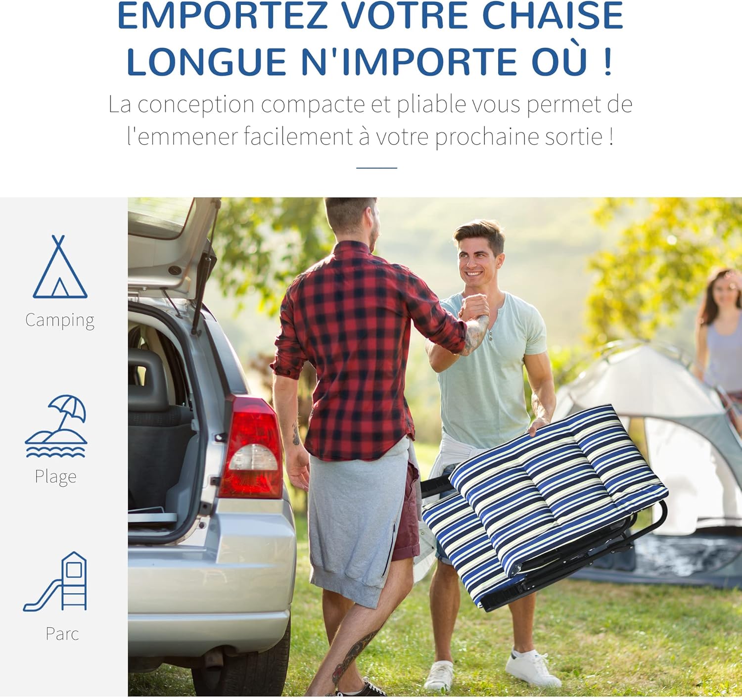 DOSSIER INCLINABLE MULTI-POSITIONS : transat de plage extérieur avec dossier inclinable multi-positions (6), idéal pour trouver la position la plus adaptée à la situation et votre besoin : lecture, sieste, bain de soleil, etc…
