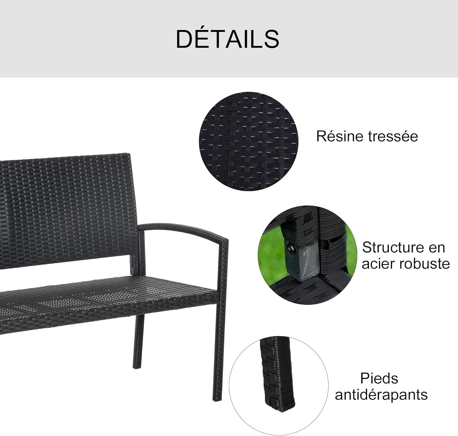 DESIGN : banc de jardin 2 places style cosy chic en résine tressée 4 fils imitation rotin qui décorera parfaitement votre jardin, terrasse, balcon grâce à ses belles lignes harmonieuses