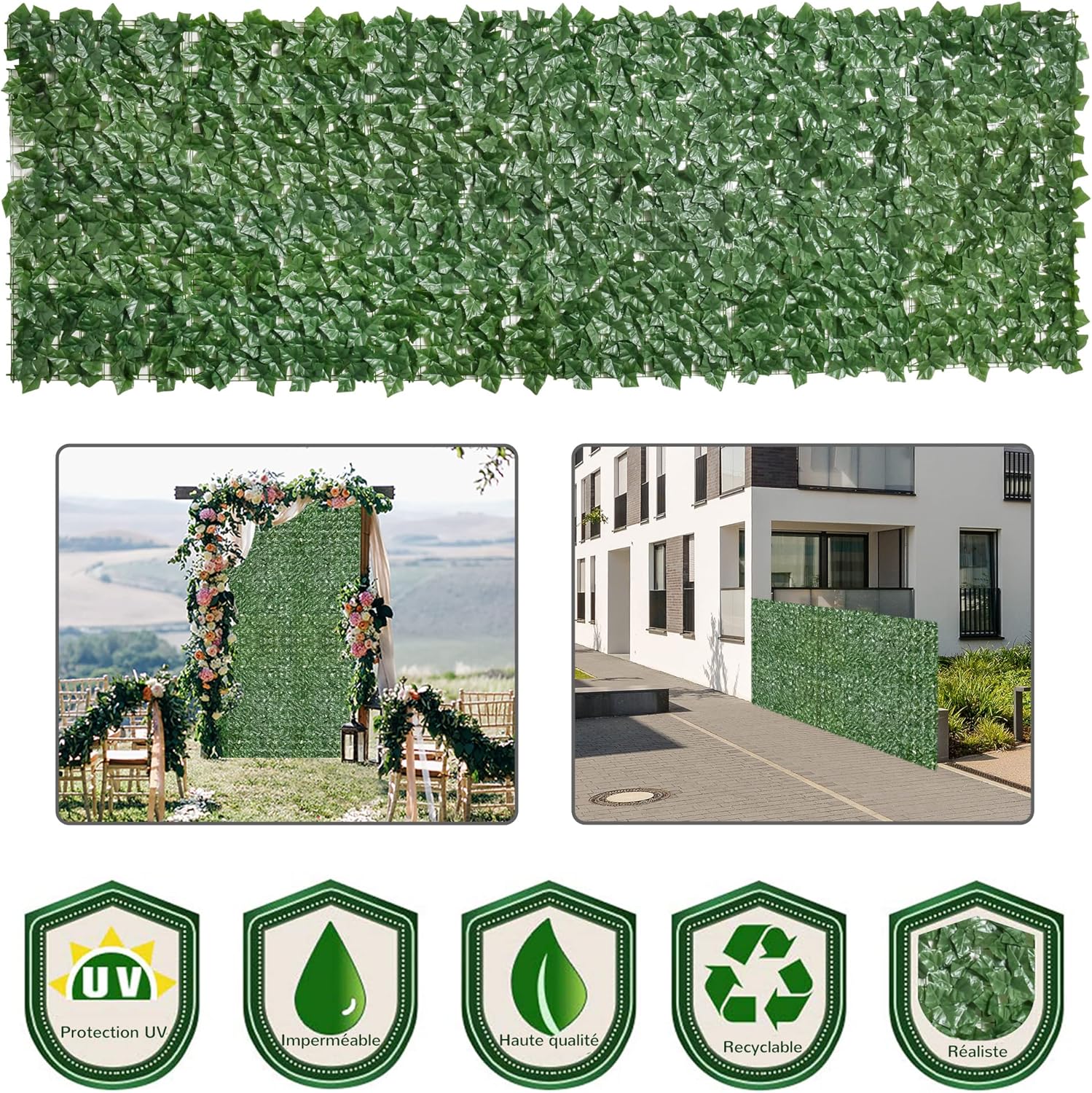 FACILE À INSTALLER ET À LAVER : Cette haie artificielle est idéale pour agrémenter le paysage de votre jardin, balcon, terrasse ou piscine. Après l’installation, veuillez prendre quelques minutes pour disposer les feuilles afin de les rendre plus uniformes, améliorant ainsi l’esthétique et l’intimité