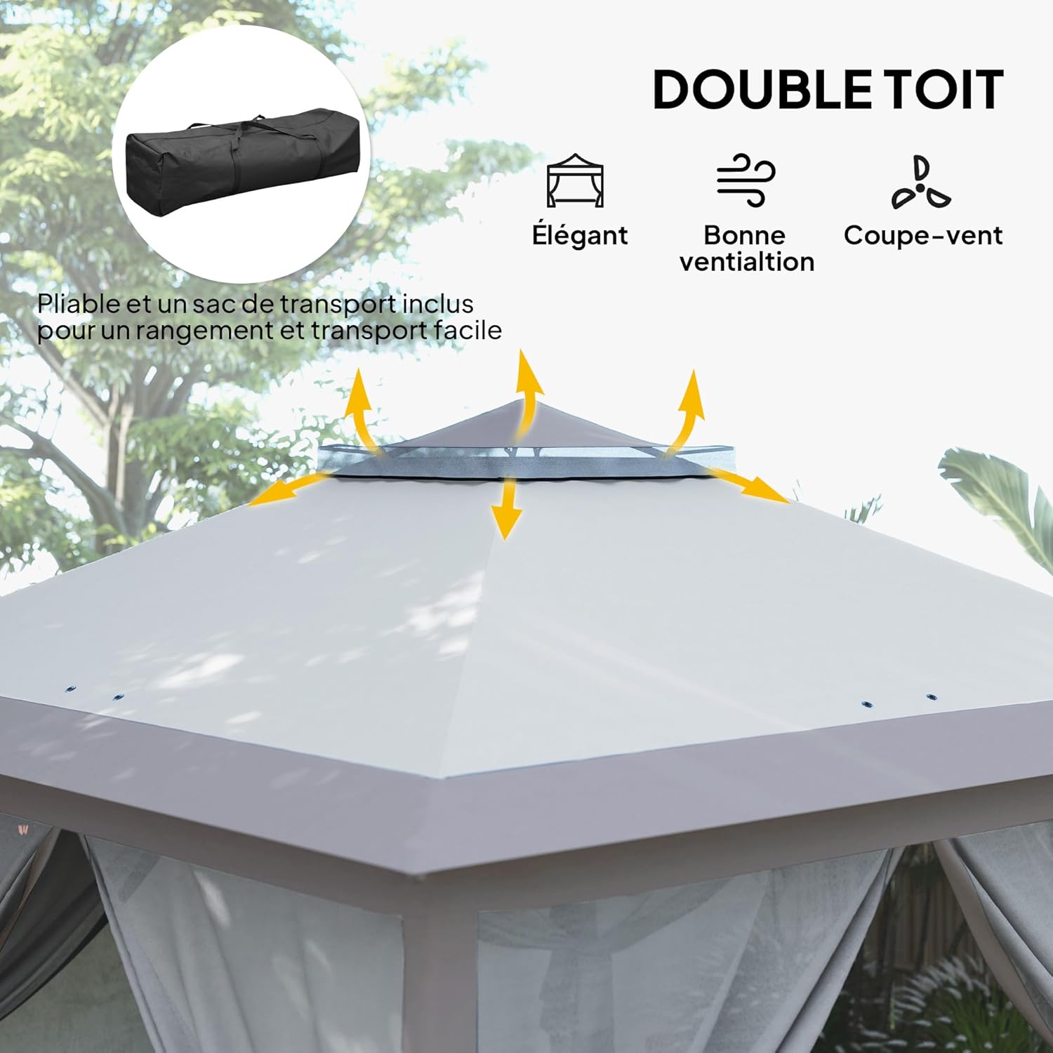 PROTECTION & AÉRATION OPTIMUMS : Tonnelle pliante de jardin protège efficacement contre les rayons UV du soleil. Tonnelle à double toit avec fonction de ventilation en cas de forte chaleur