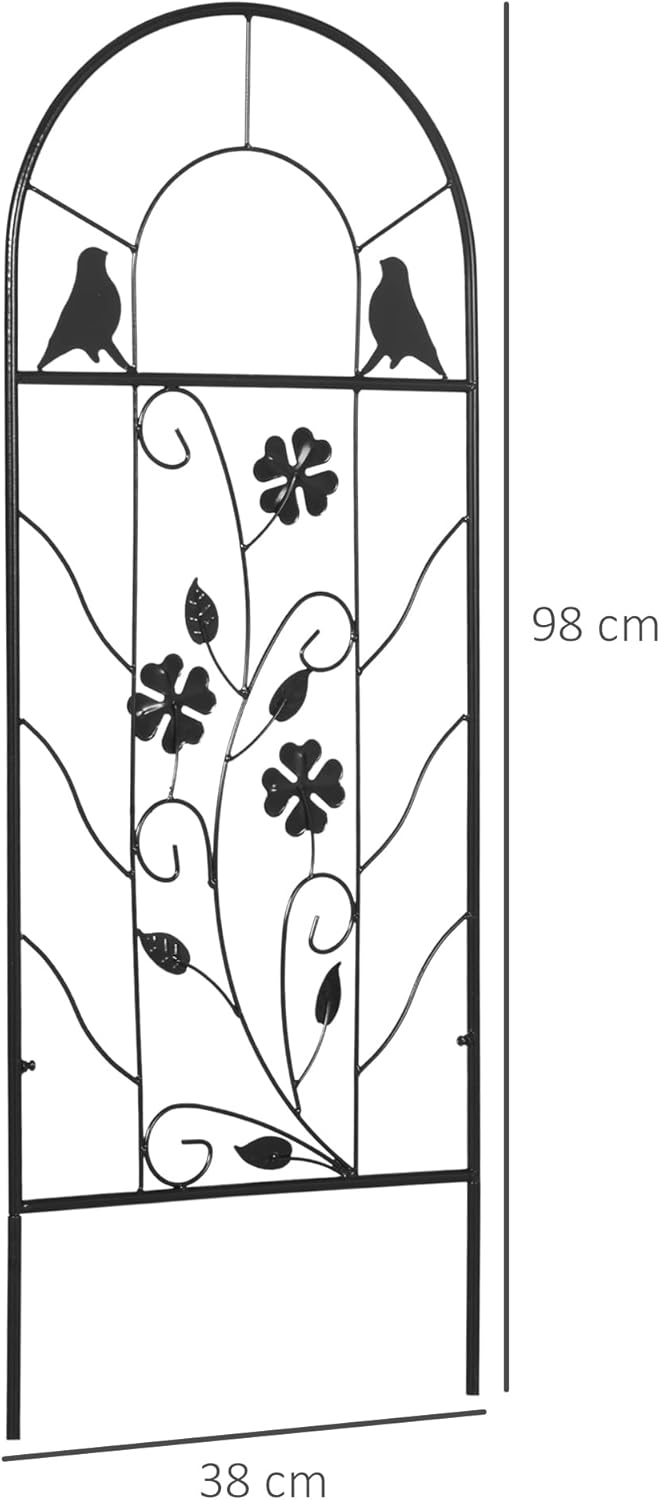 Ensemble de 2 treillis décoratifs Motifs trèfles et oiseaux, apportent une touche de charme à votre extérieur Conçu en métal époxy résistant aux intempéries Pour soutenir et aider à la croissance de vos plantes grimpantes Il se plante directement dans la terre de vos jardinières ou dans le sol Ne demande aucun entretien Montage facile requis
