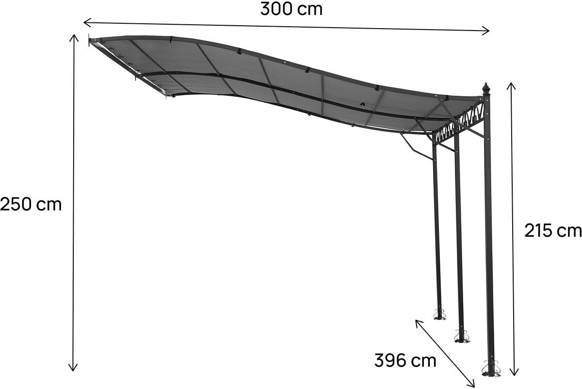 Cette pergola avec toit adossé est l’accessoire idéal pour aménager votre espace extérieur avecstyle et praticité. Avec ses dimensions généreuses,396 x 300 x 215/250 cm, elle offre une surface généreuse pour créer unespace ombragé. Conçue pour durer, elle est équipée d’untoit traité anti-UV,qui protège efficacement contre les rayons du soleil, et d’unestructure en métal robustebénéficiant d’untraitement antirouille.Résistante à l’eau, elle assure une protection contre les intempéries légères, vous permettant de profiter de vos moments en plein air sans souci. Avec sa teinte grise, cette tonnelle s’intègre harmonieusement à tous les styles de jardin, tout en offrant unesoliditéet unedurabilitéadaptées à une utilisation prolongée. C’est le choix parfait pour vos repas en famille, moments de détente ou réceptions estivales. Descriptif : Tonnelle avec toit adossée – Dimension : 396 x 300 x 215/250 cm – Poids : 23,2 kg -Traitement anti-UV et antirouille – Résistant à l’eau – Métal – Gris.