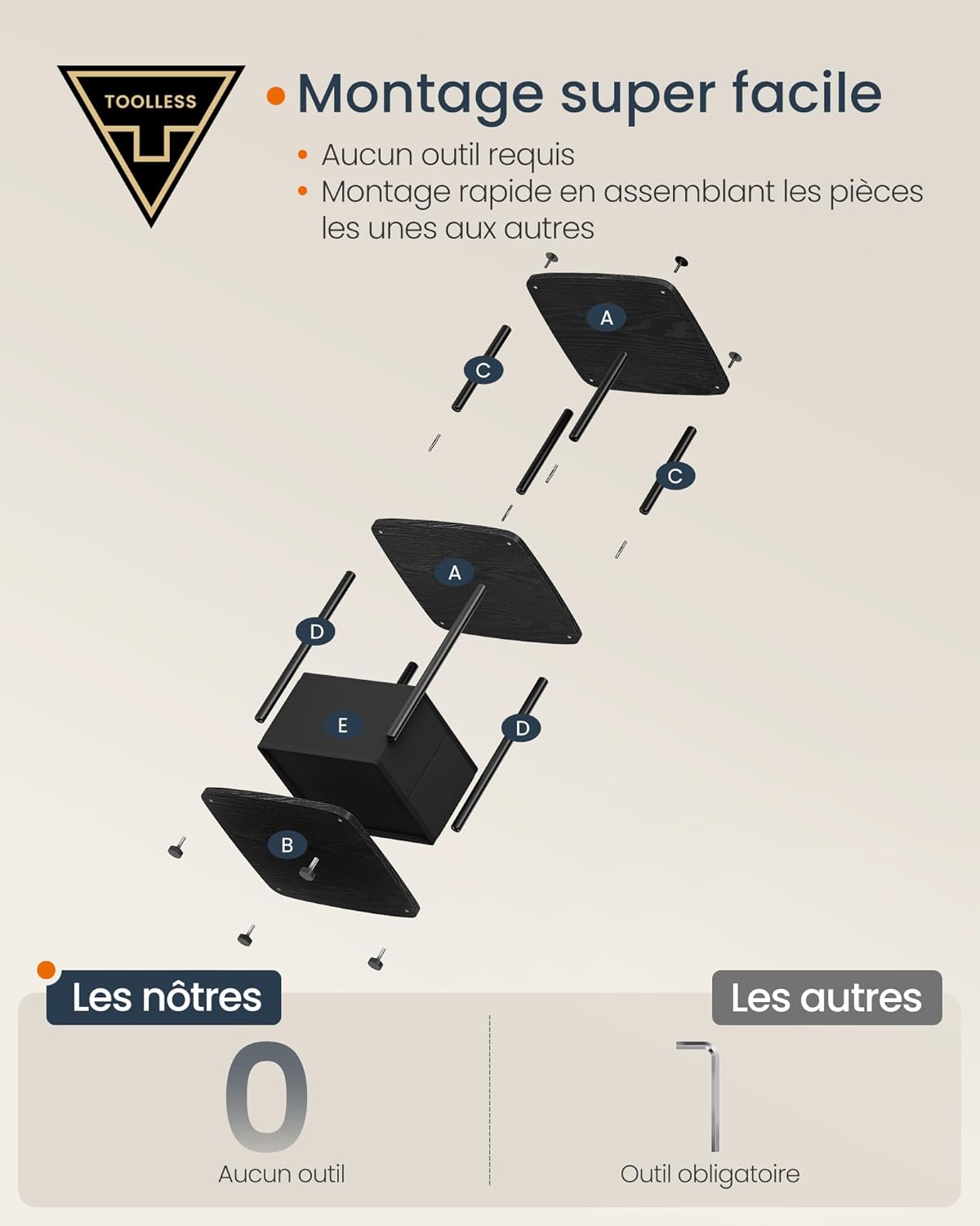 【MONTAGE FACILE】Grâce aux instructions claires et aux pièces numérotées, le montage se fait en un clin d’œil, sans aucun outil