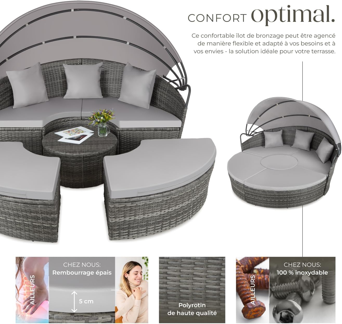 UN SALON DE JARDIN QUI S’ADAPTE À VOS BESOINS : Imaginez un salon extérieur qui s’adapte à chaque occasion. Notre ensemble salon de jardin, avec ses chaises confortables et sa table modulable, est idéal pour tout, des après-midis de détente aux soirées entre amis. La modularité de ce salon jardin resine tressee encastrable vous permet de personnaliser votre espace selon vos envies, offrant à la fois fonctionnalité et esthétisme.