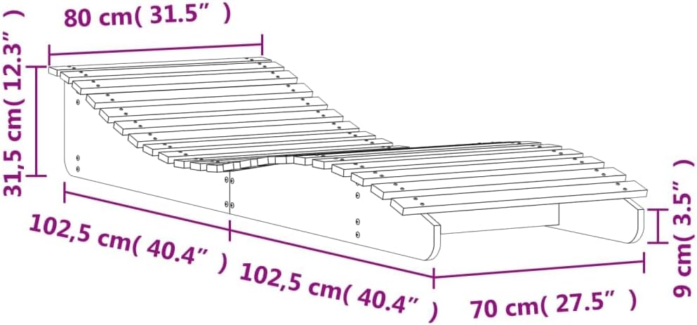 - Dimensions totales : 205 x 80 x 31,5 cm (L x l x H)