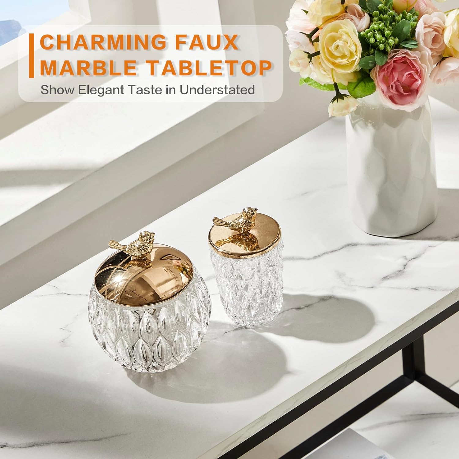 Le charmant plateau en imitation marbre montre le goût élégant du maître en sobre. La structure unique de 3 couches est élégante et très pratique avec différents domaines fonctionnels. Le design de l’espace ouvert peut afficher les décorations de la console dans différentes directions, comme des plantes, des fleurs ou des photos.