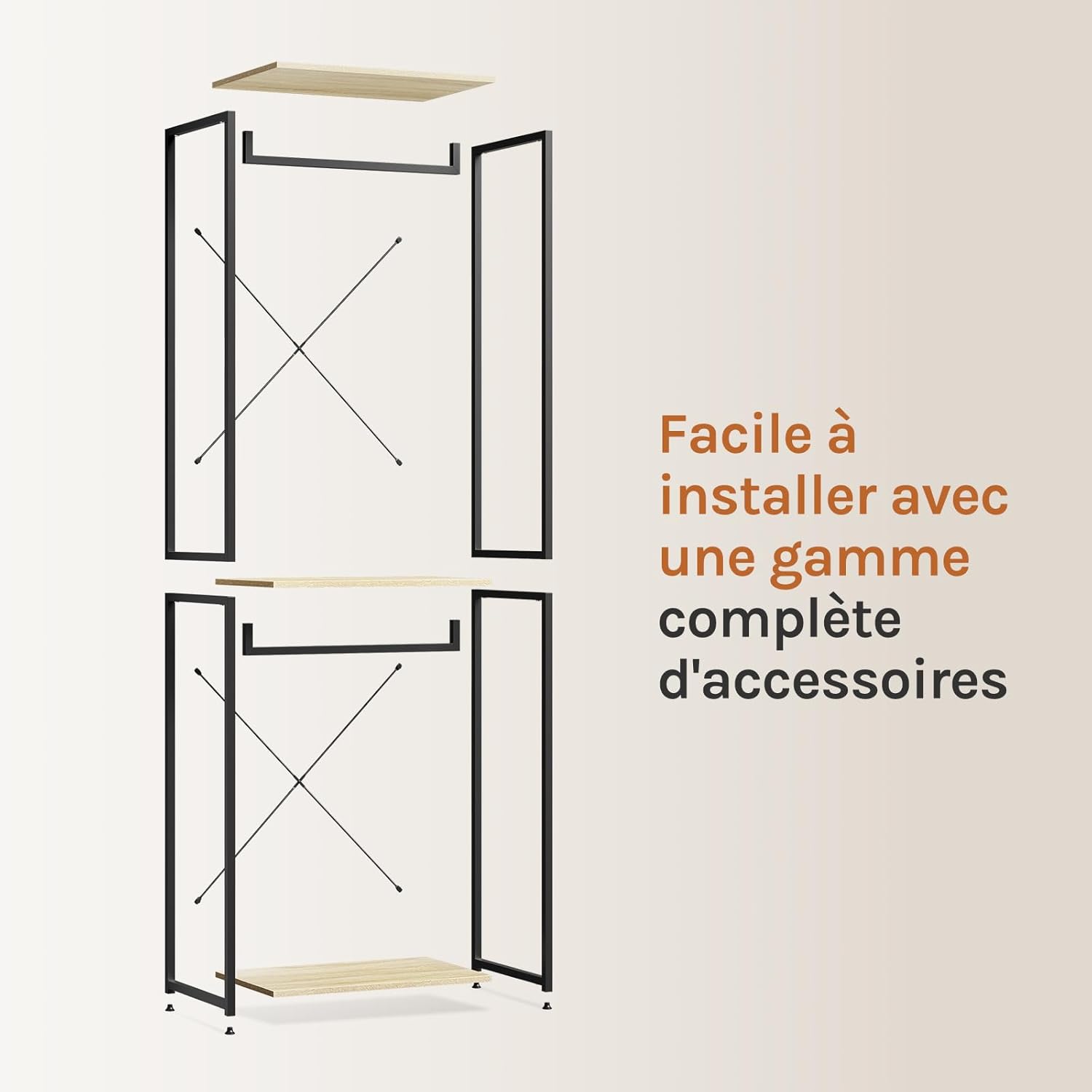 Montage facile: Cette étagère à vêtements n’a aucun accessoire compliqué. Cependant, il faut suivre les numéros d’instructions inclus afin d’éviter tout démontage inutile et tout dommage aux accessoires causés par de mauvaises installations.De plus, il est recommandé d’installer ce meuble par deux personnes. Remarque: si vous voulez nettoyer ce produit, essuyez-le avec un chiffon essoré