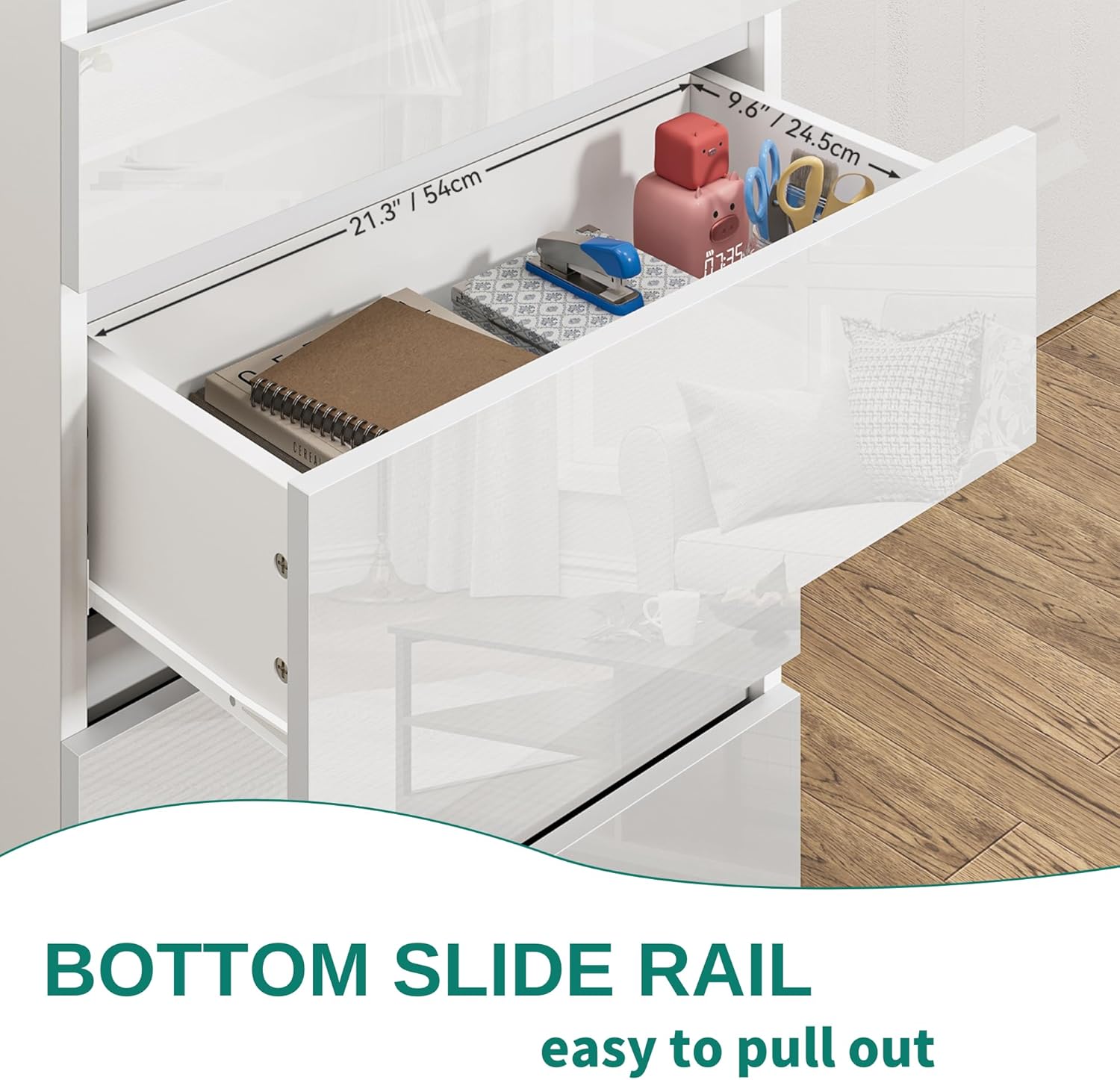 Construction durable : fabriquée à partir d’un mélange de MDF et d’aggloméré avec une finition en placage de papier, cette commode est robuste et fiable. Les rails coulissants lisses assurent une utilisation facile des tiroirs.