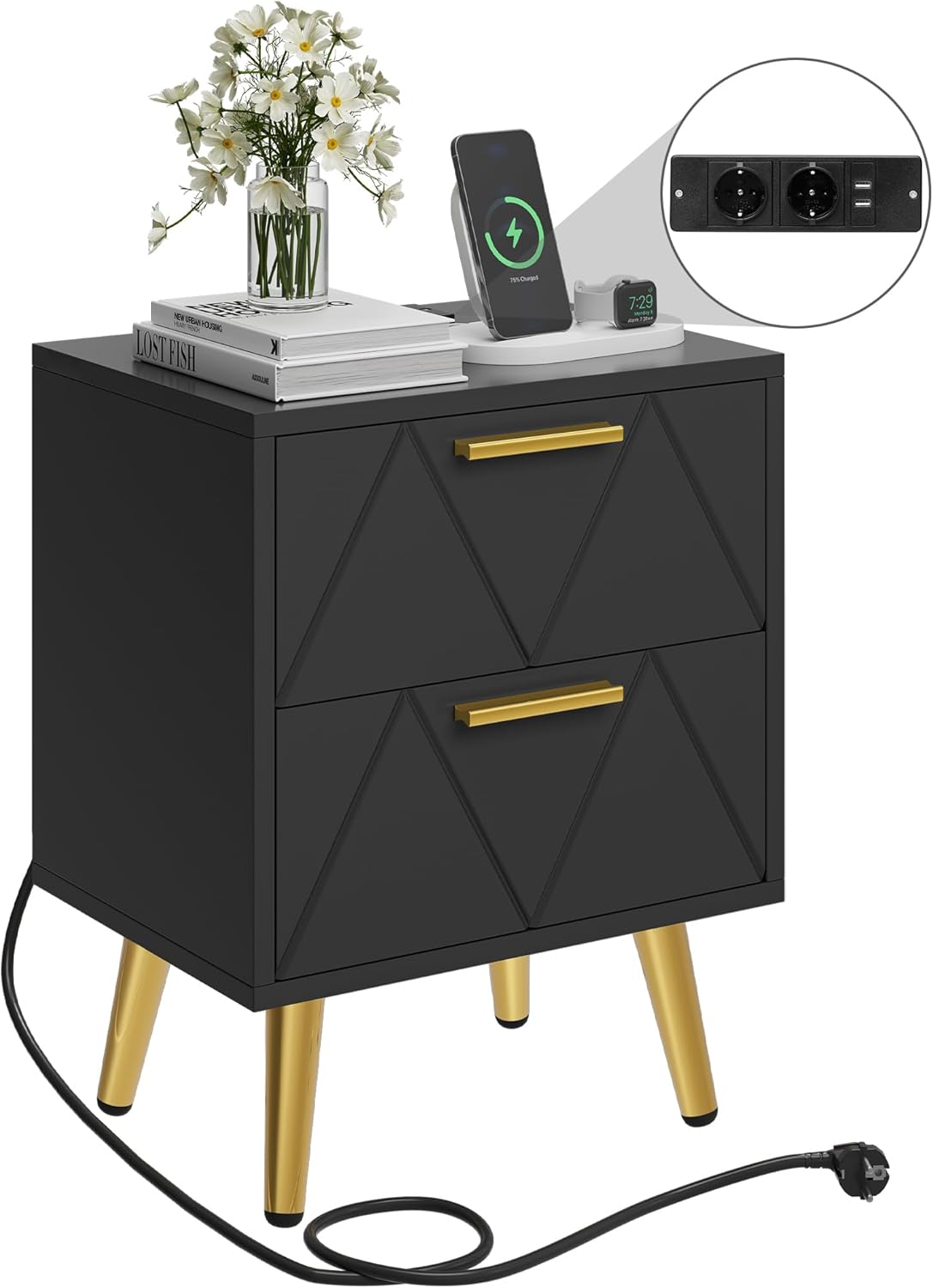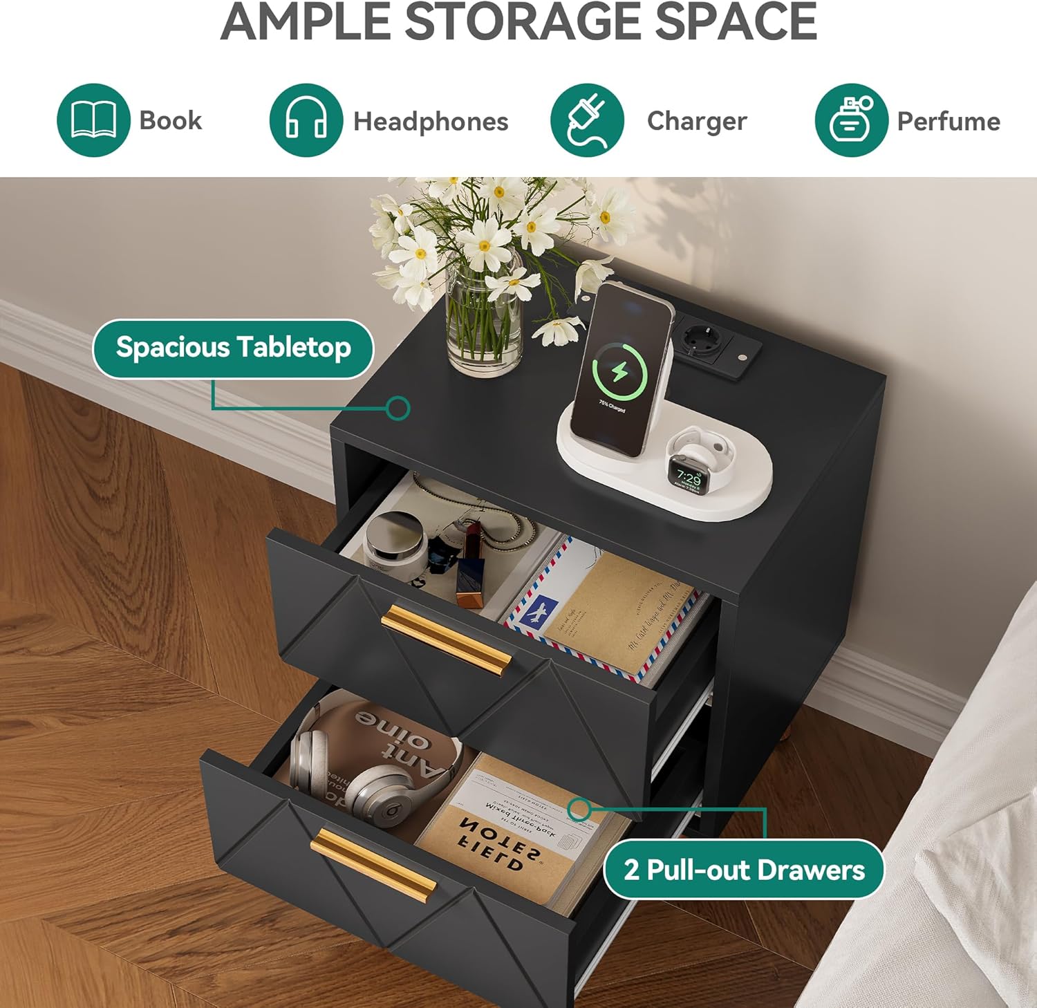 Rangement Pratique: Cette table d’appoint dispose de 2 tiroirs pour ranger divers articles, tels que des télécommandes, des kits d’ongles, du baume à lèvres, des rasoirs, des sèche-cheveux, des chargeurs et plus encore. Avec la table pour exposer votre lampe, horloge, cadre photo, décorations et verres.