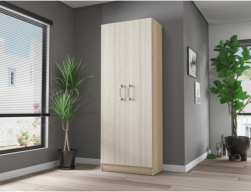 Armoire 2 Portes Chêne et Erable Multifonctions L 61 H 160.6 P 31.8 cm