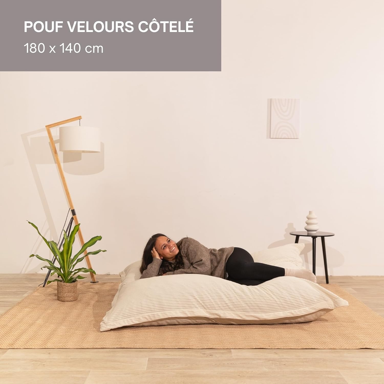 Design chic et polyvalent : Le tissu en velours côtelé de notre pouf lui apporte une élégance instantanée, sublimant tous vos espaces. Parfait pour le salon, la chambre ou un coin cosy, il se transforme selon vos envies : pouf lit, pouf gamer ou grand coussin de sol, offrant style et confort en toute occasion.