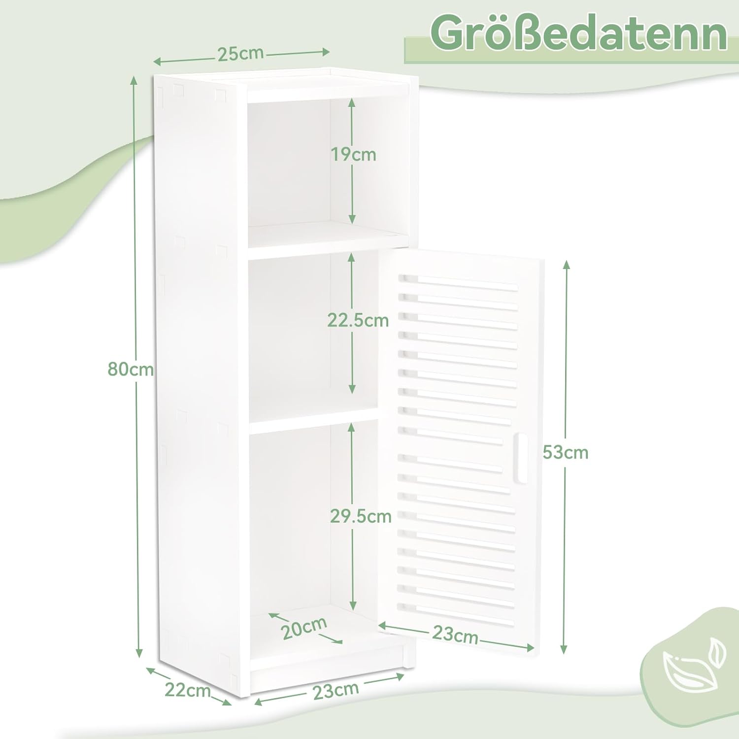 Idéal pour les espaces confinés : les dimensions du meuble de salle de bain sont de 80x25x22 cm. La taille mince permet d’économiser un espace précieux dans un petit salon. Même dans une mini salle de bain, vos serviettes, vos articles de toilette et vos accessoires sont toujours visibles et à portée de main.