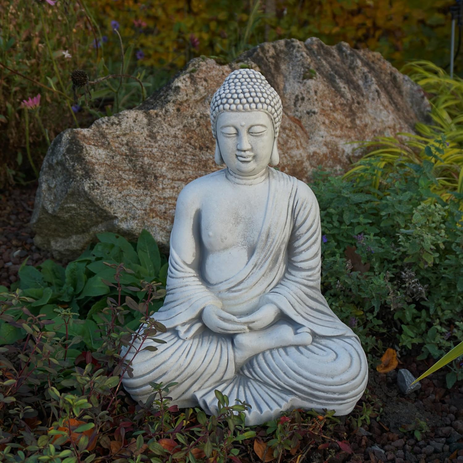 Les jardins Feng Shui, les zones de conception japonaise ou chinoise, même sur les terrasses, sont très tendance : Cette figurine de Bouddha assis ne doit en aucun cas manquer !