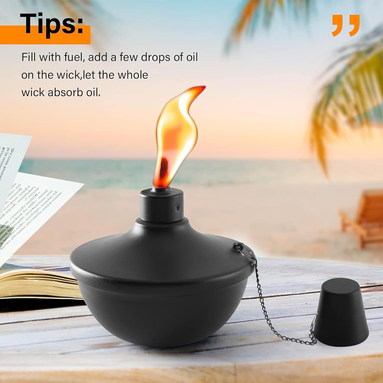 Torches de table en métal : la torche de table à la citronnelle dispose d’un système de ravitaillement convivial avec une conception à large ouverture pour un ravitaillement facile. Dévissez simplement le couvercle et remplissez d’huile pour réduire les déchets et profiter d’une ambiance extérieure ininterrompue.