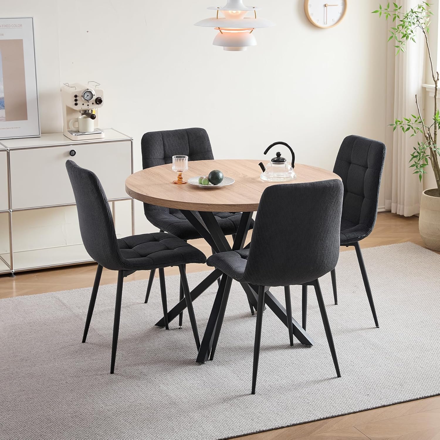 Le look scandinave, la combinaison du velours côtelé distinctif et des pieds en métal élégants créent une impression élégante, tandis que le rembourrage en mousse et le revêtement d’assise en velours côtelé rendent la chaise particulièrement confortable.